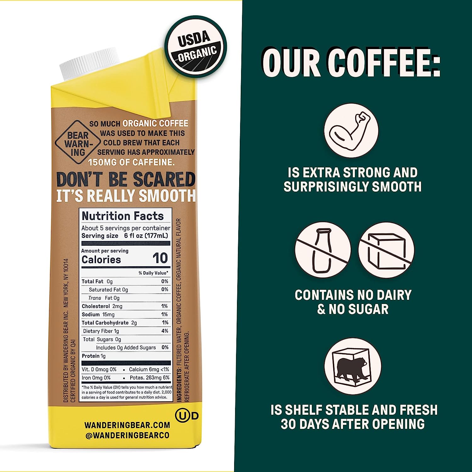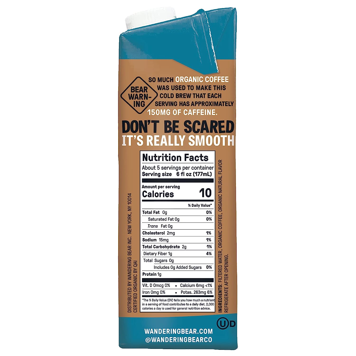 Wandering Bear Organic Vanilla Cold Brew Coffee. 32 fl oz. 6 pack - Extra Strong. Smooth. Organic. Unsweetened. Shelf-Stable. and Ready to Drink Iced Coffee. Cold Brewed Coffee. Cold Coffee