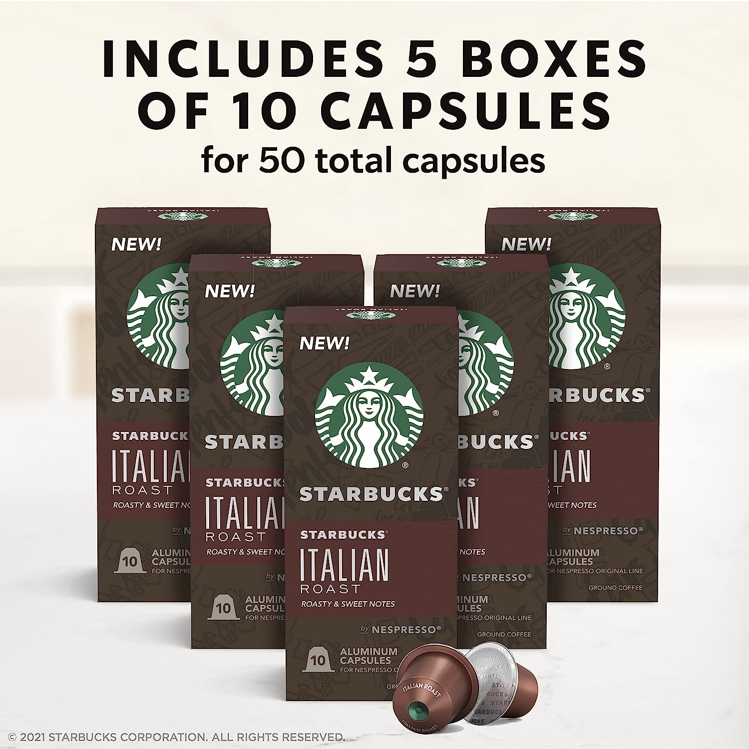 Starbucks by Nespresso Dark Roast Italian Roast Coffee (50-count single serve capsules. compatible with Nespresso Original Line System)