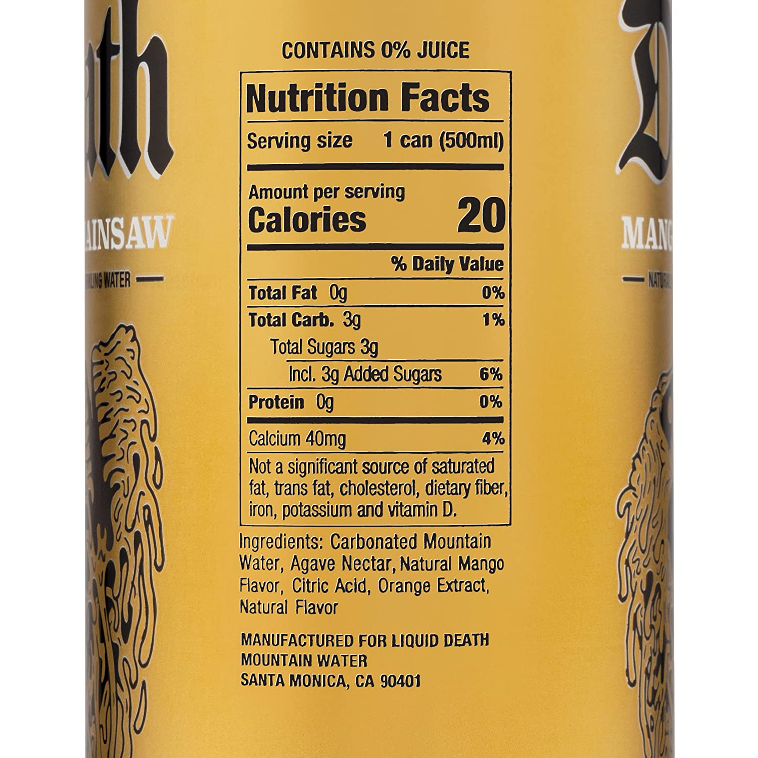 Liquid Death Sparkling Water. Mango Chainsaw 16.9 oz. Tallboys (12-Pack)