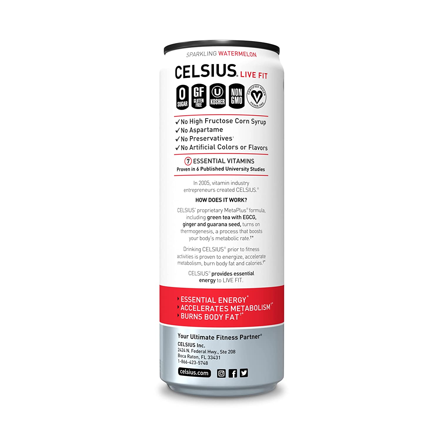 CELSIUS Essential Energy Drink 12 Fl Oz. Sparkling Watermelon (Pack of 12)