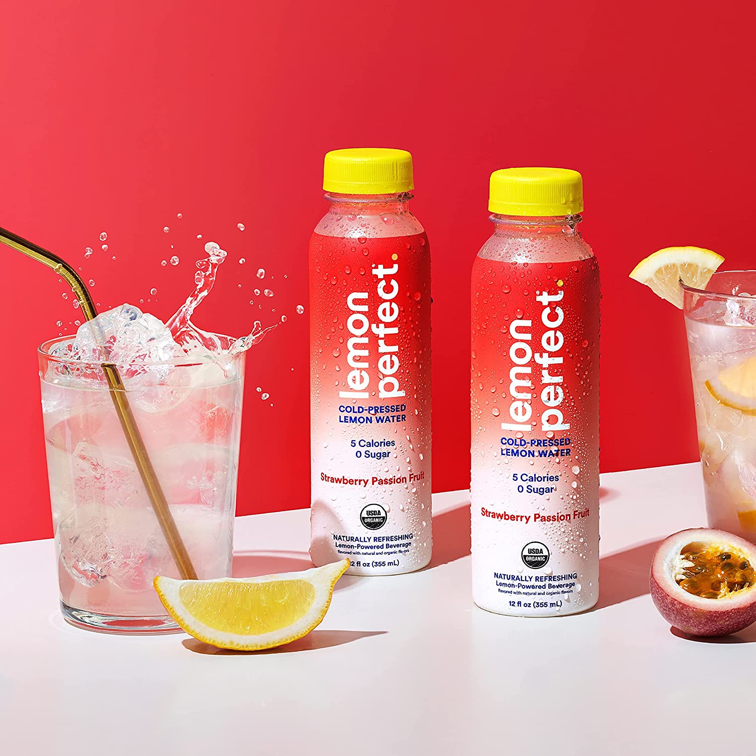 Lemon Perfect. Organic Cold-Pressed Lemon Water. Flavored Water. Strawberry Passion Fruit (12-Pack)