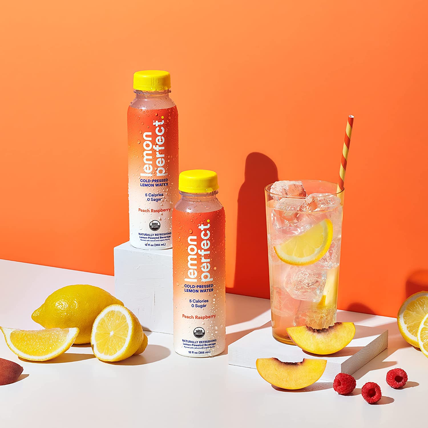 Lemon Perfect. Organic Cold-Pressed Lemon Water. Flavored Water. Peach Raspberry (12-Pack)