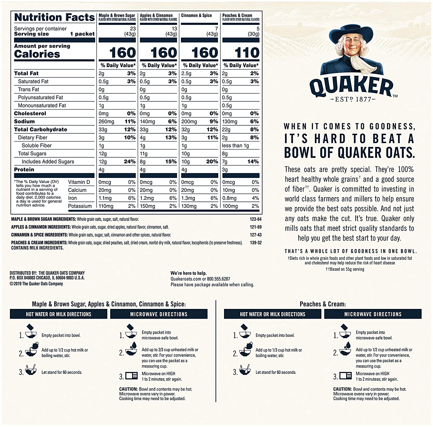 Quaker Instant Oatmeal. 4 Flavor Variety Pack. Individual Packets. 48 Count