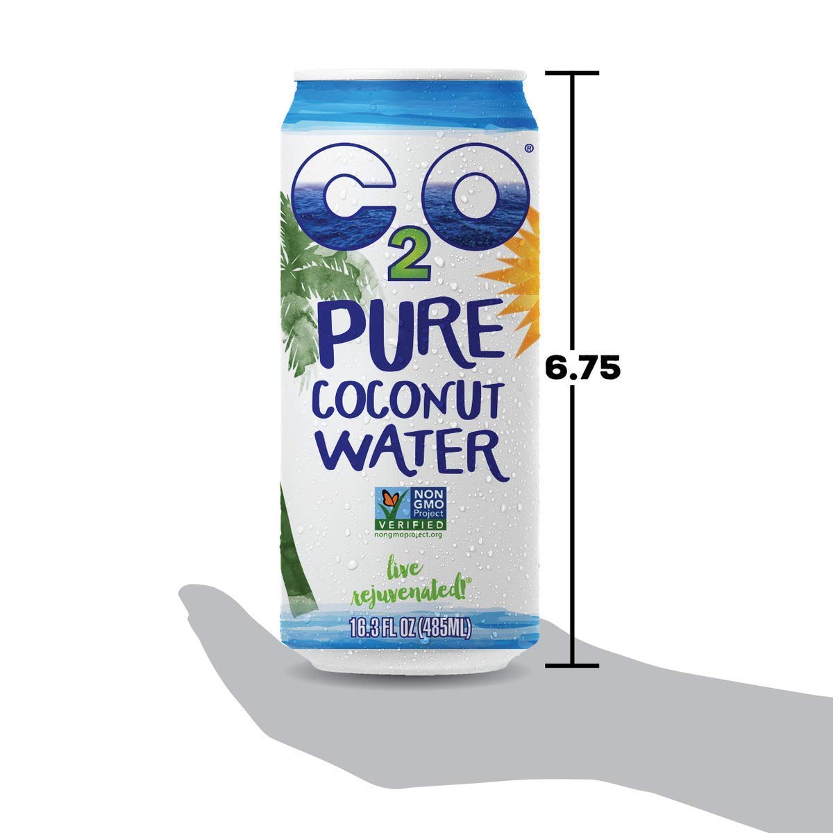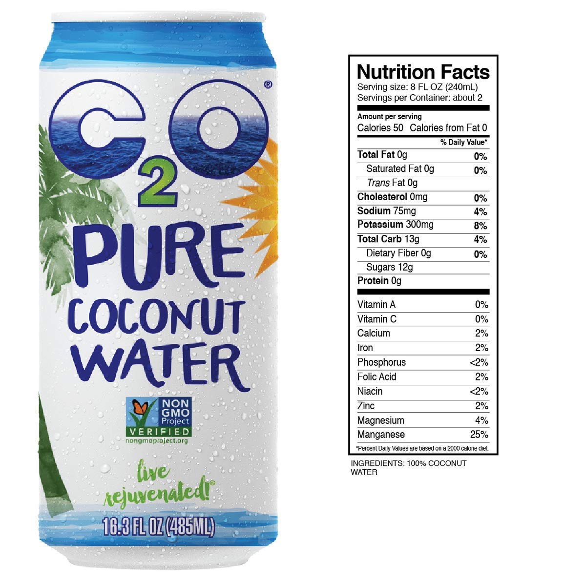 C2O Pure Coconut Water - Plant Based. Non-GMO. No Added Sugar. Essential Electrolytes - 16.3 FL OZ (Pack of 8)
