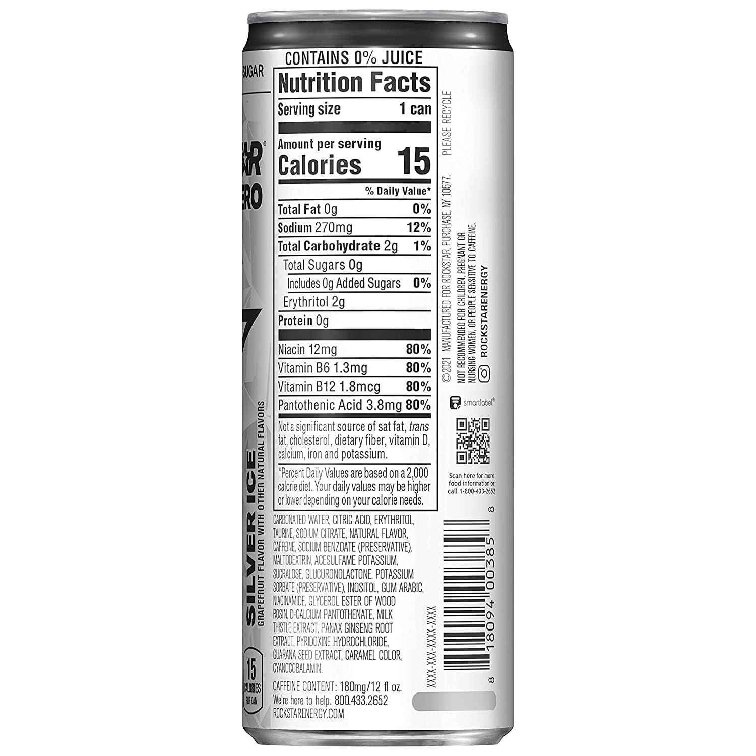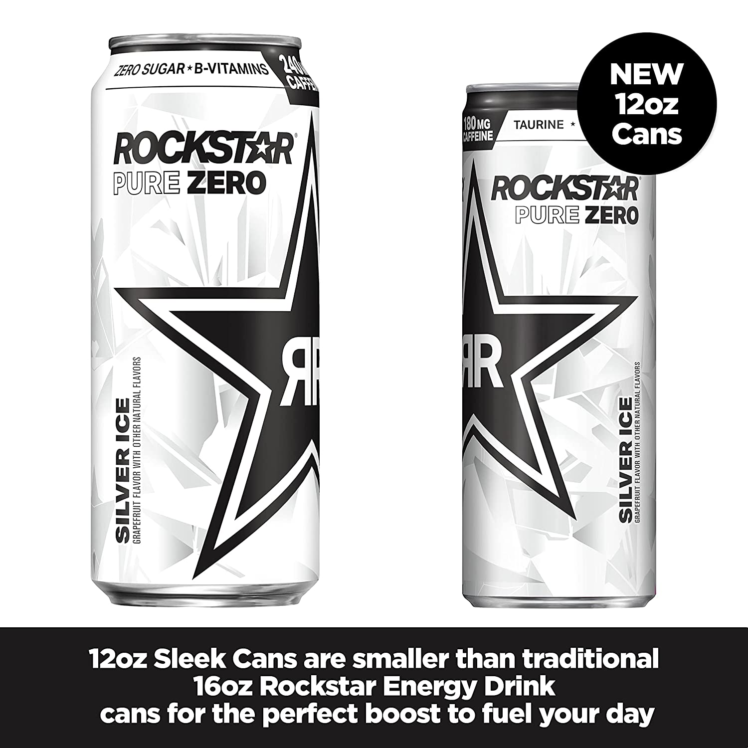 Rockstar Energy Drink. Pure Zero Silver Ice. 12oz Sleek Cans (8 Pack)