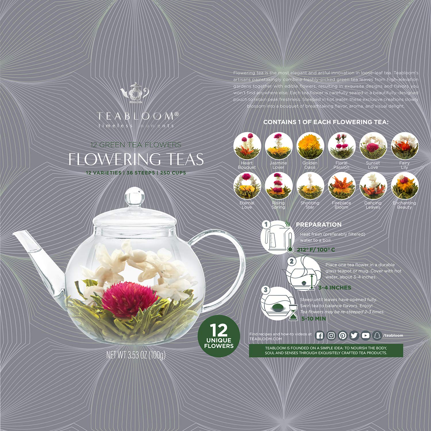 Teabloom Flowering Tea. 12 Unique Varieties of Fresh Blooming Tea Flowers 12-Pack