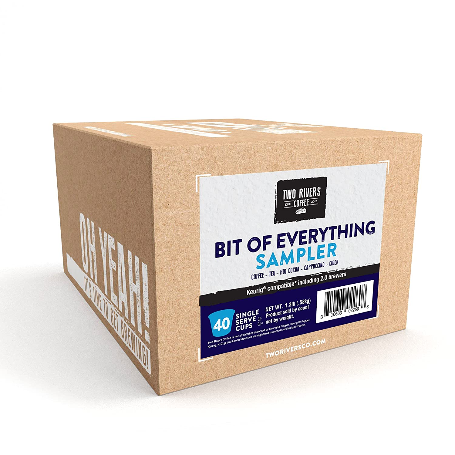 Two Rivers Coffee. Tea. Cocoa. Cider. Cappuccino Variety Sampler Pack . 40 count