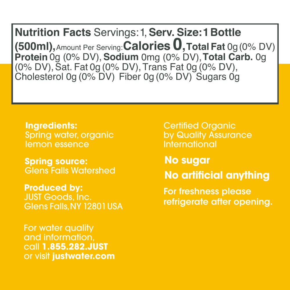 JUST Water Infused. Lemon Flavored Spring Water. 16.9 Oz. (Pack of 12)