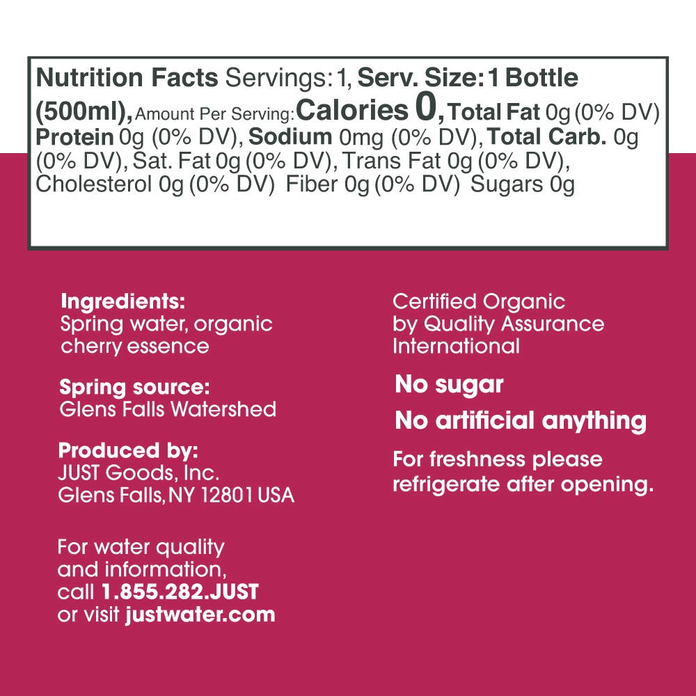 JUST Water Infused - Cherry Flavored Spring Water. 16.9 fl oz (Pack of 12)