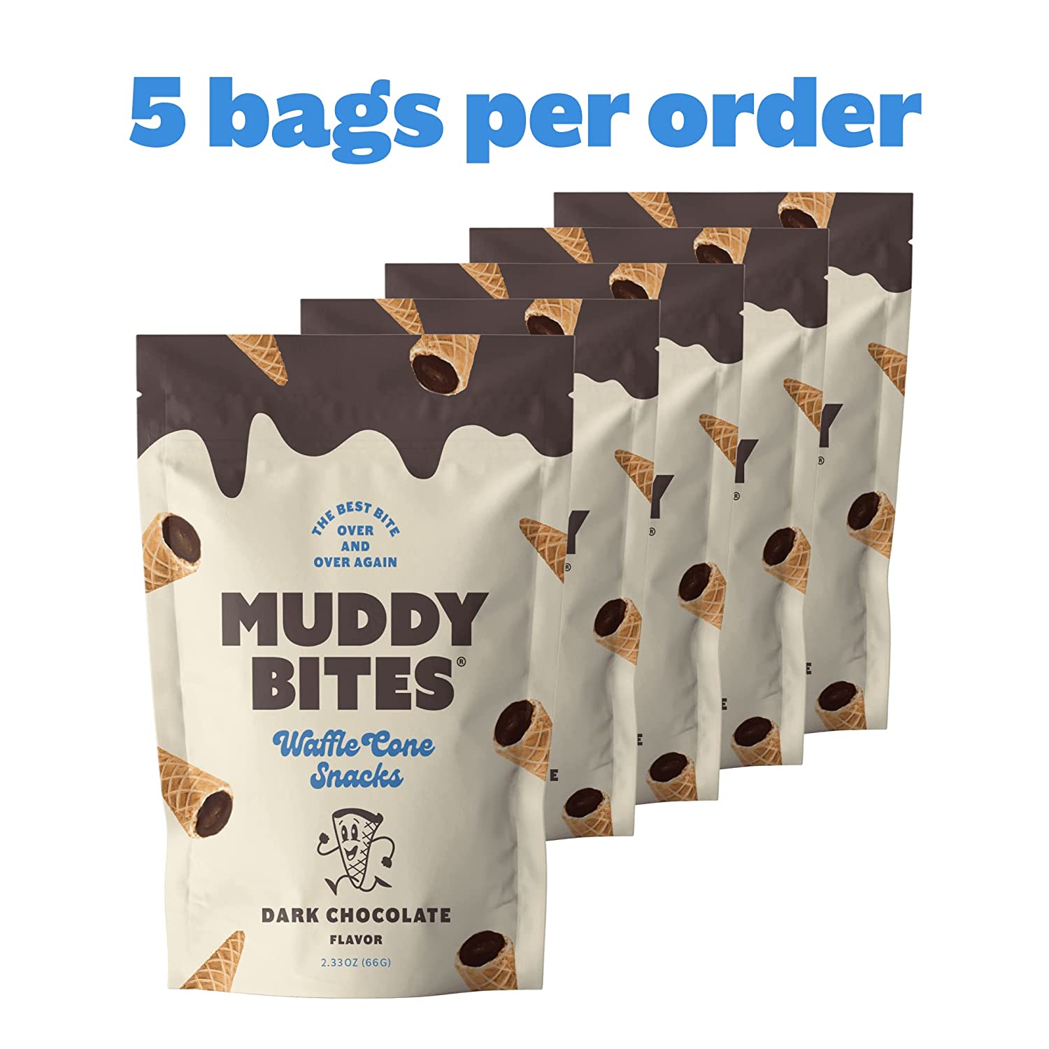 Muddy Bites Chocolate Filled Bite Size Waffle Cone Snack (Dark Chocolate. 2.33 Ounce (Pack of 5))