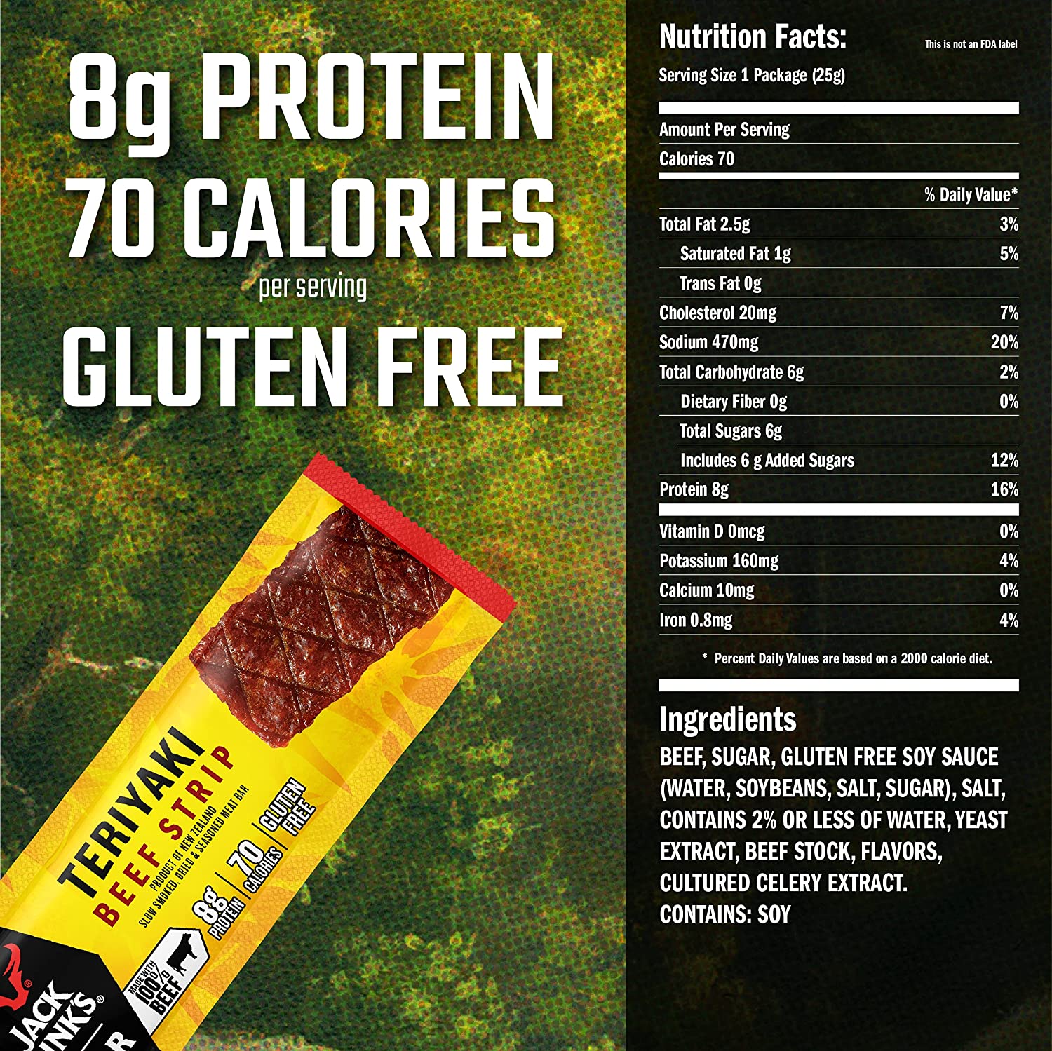 Jack Link-s Beef Jerky Bars. Teriyaki. 12 Count - 8g of Protein and 80 Calories Per Protein Bar