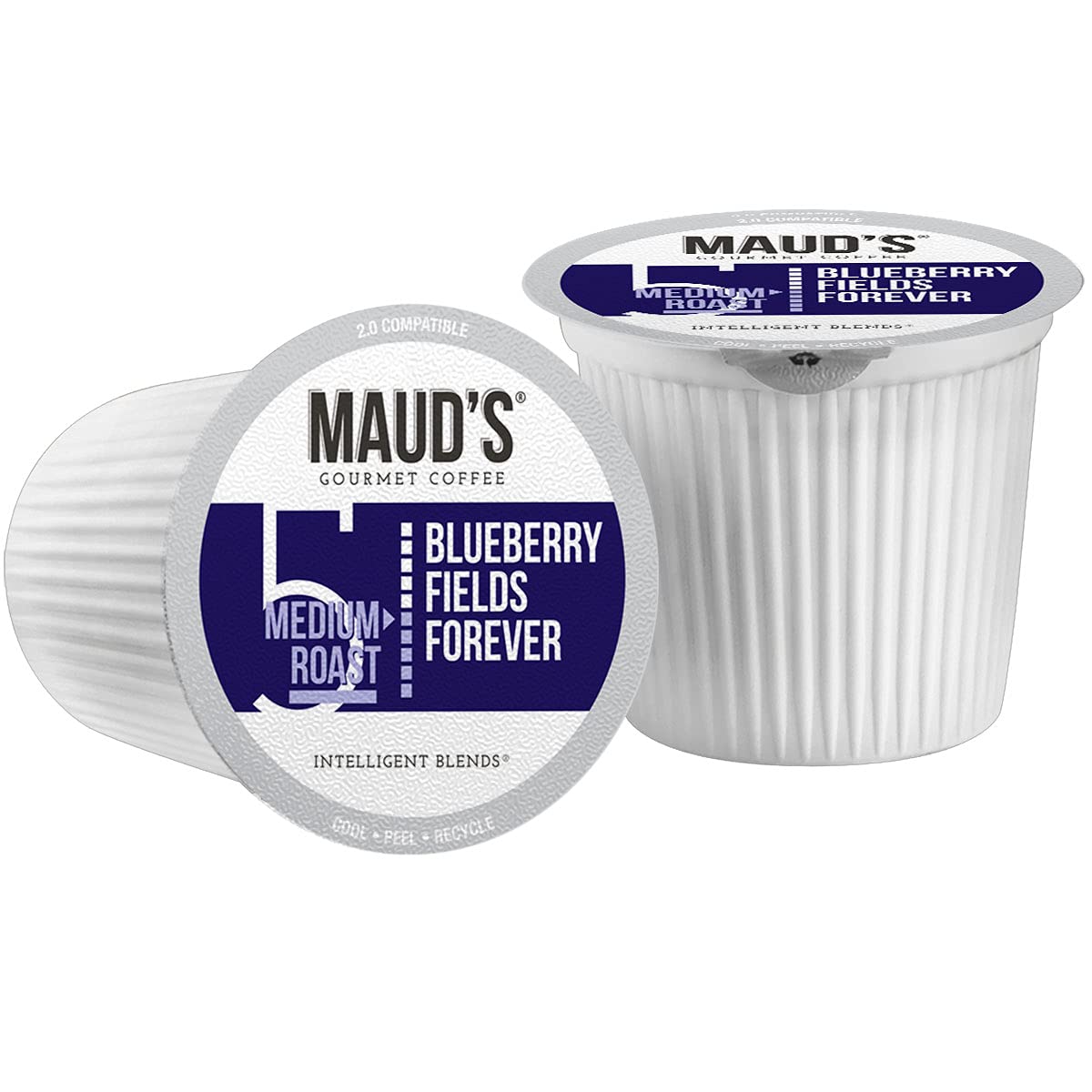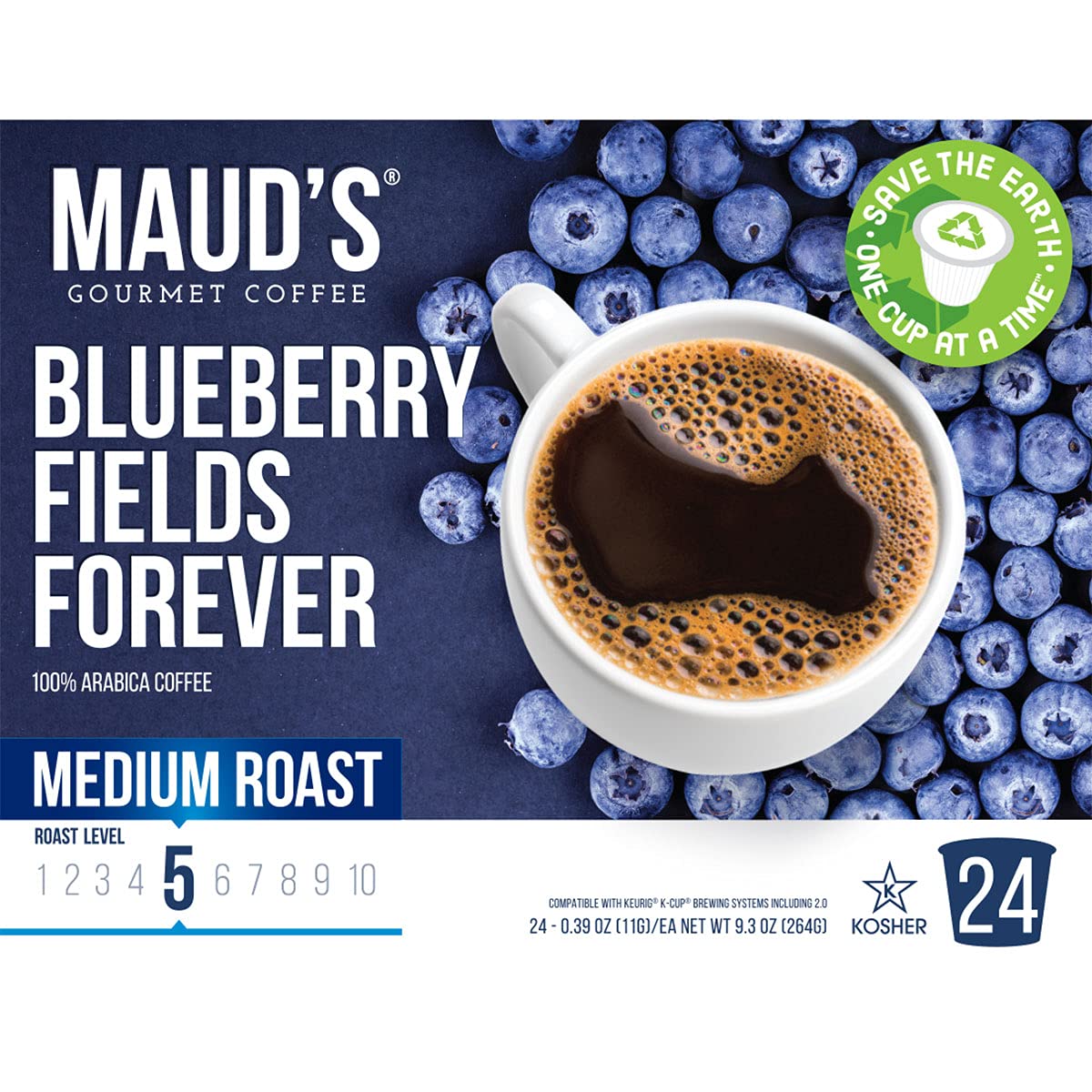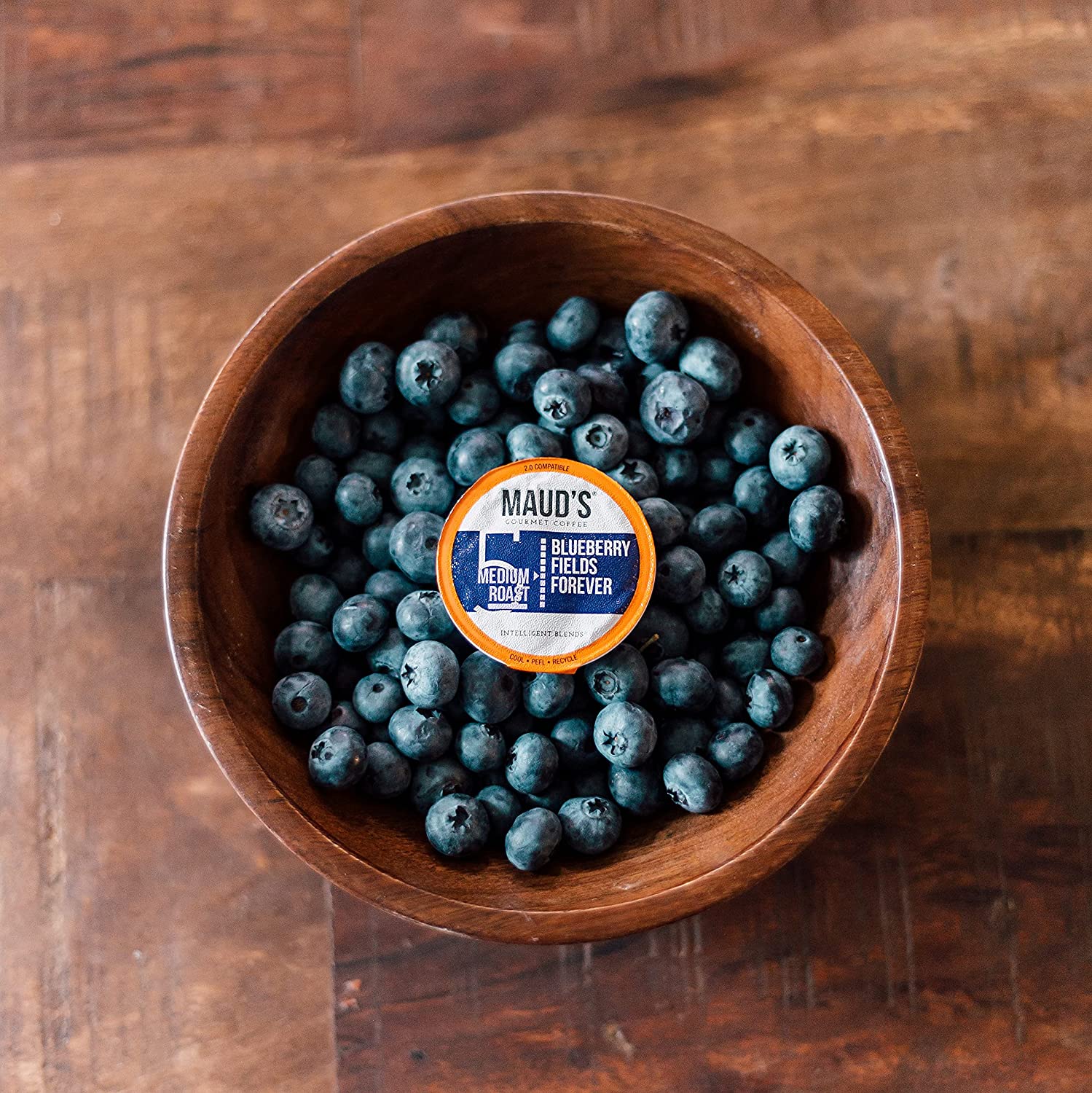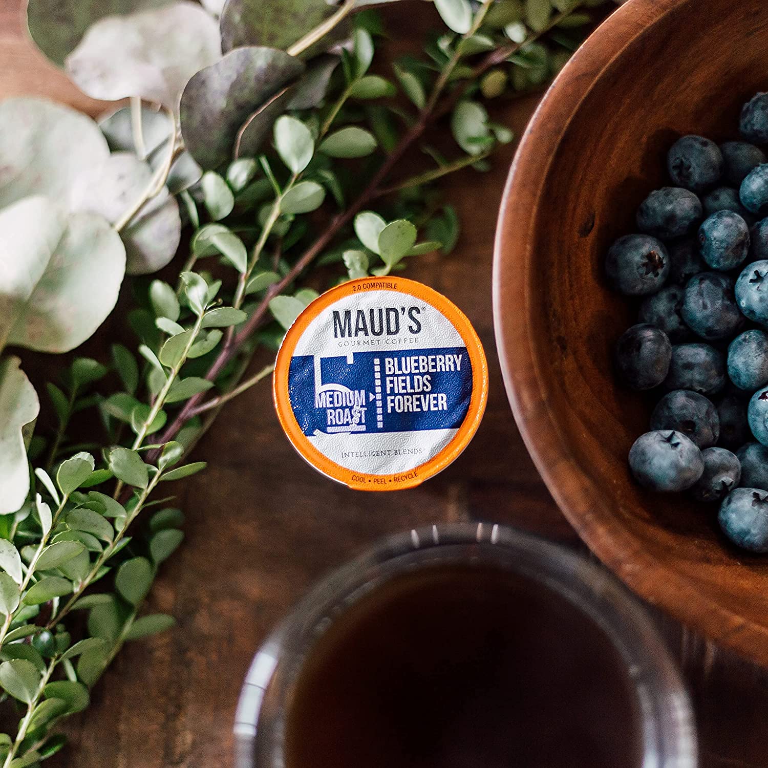 Maud-s Blueberry Coffee (Blueberry Fields Forever). 24ct. Solar Energy Produced Recyclable Single Serve Flavored Blueberry Coffee Pods – 100% Arabica Coffee California Roasted. KCup Compatible