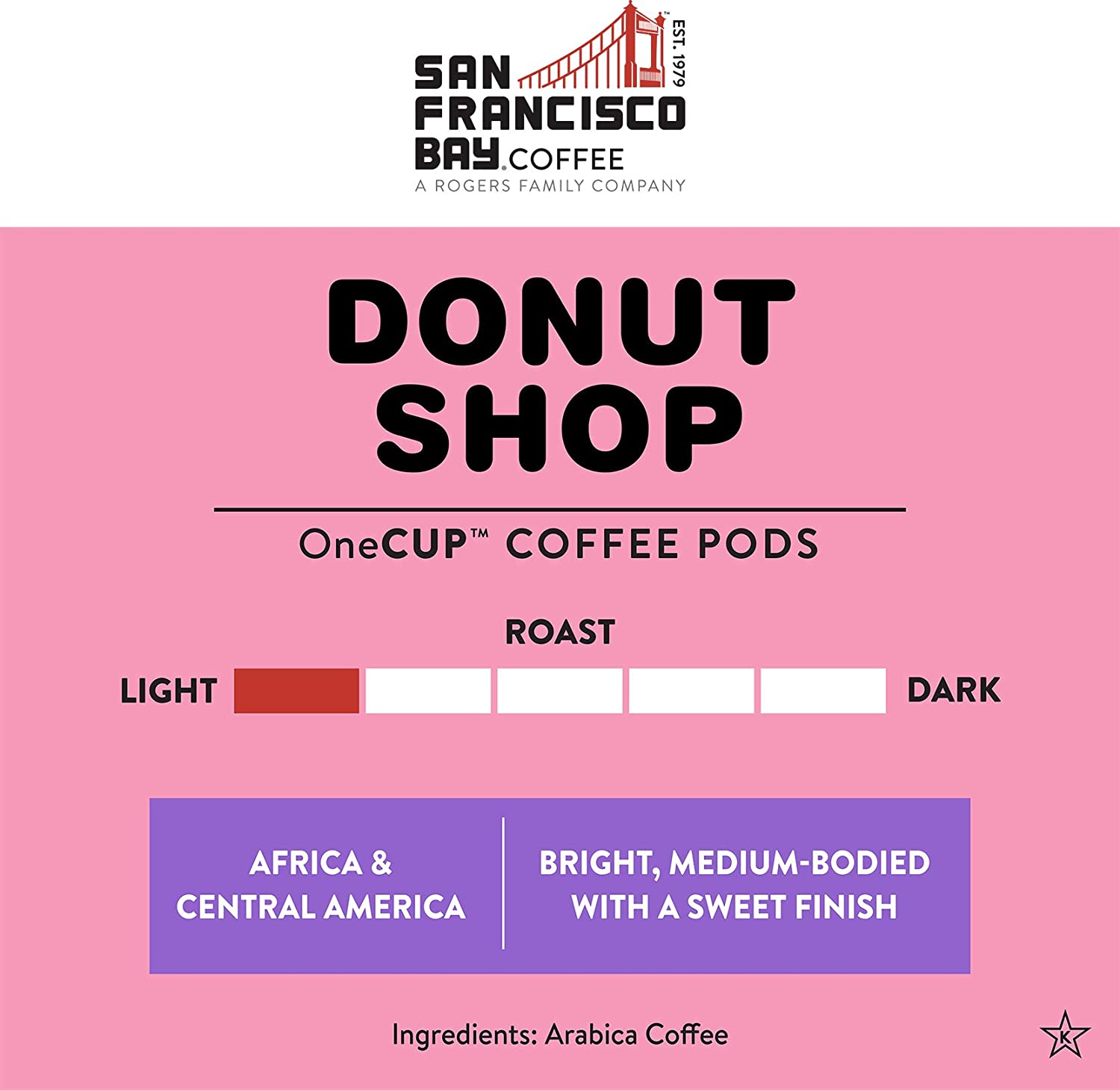 SAN FRANCISCO BAY Coffee Donut Shop 80 Ct Light Roast Compostable Coffee Pods. K Cup Compatible including Keurig 2.0