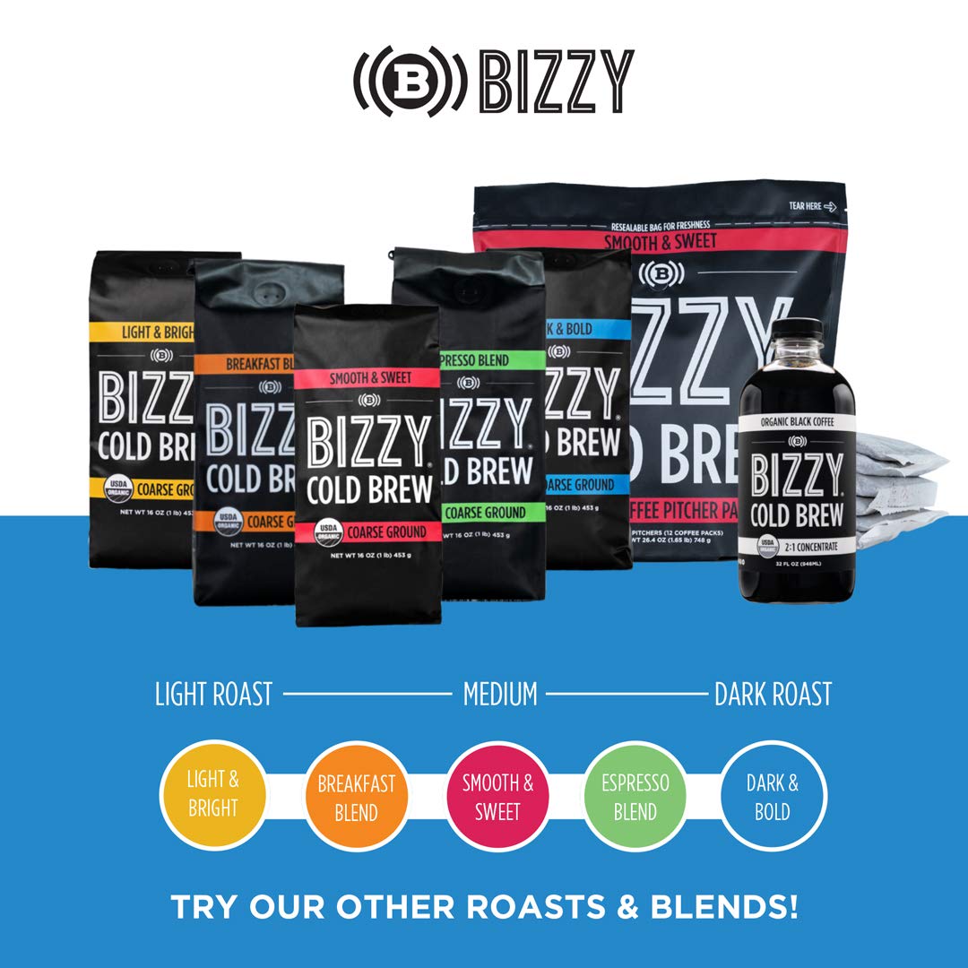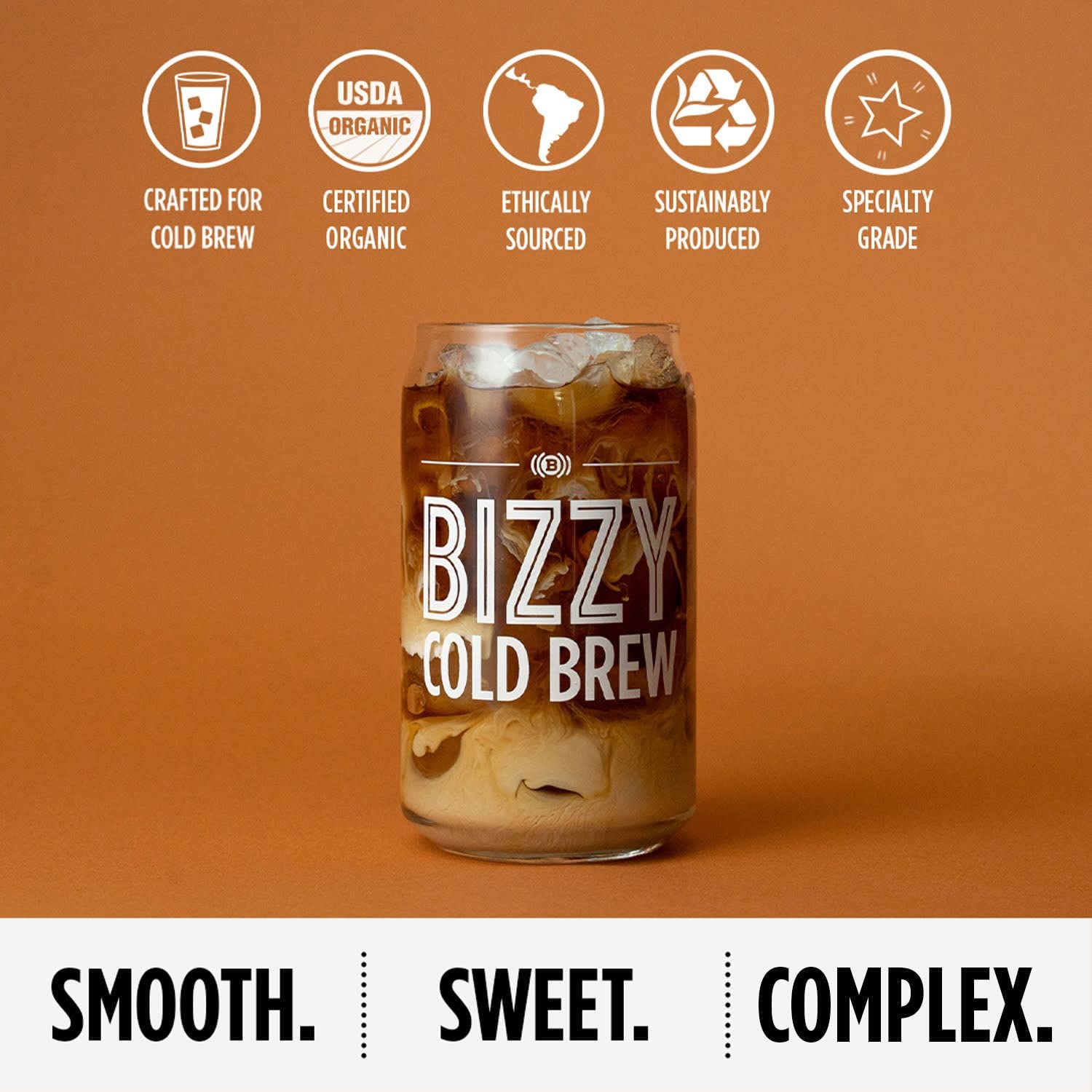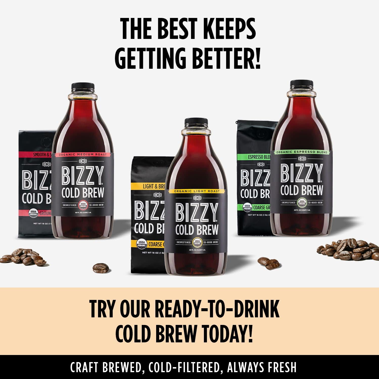 Bizzy Organic Cold Brew Coffee | Light & Bright Blend | Coarse Ground Coffee | Micro Sifted | Specialty Grade | 100% Arabica | 1 LB