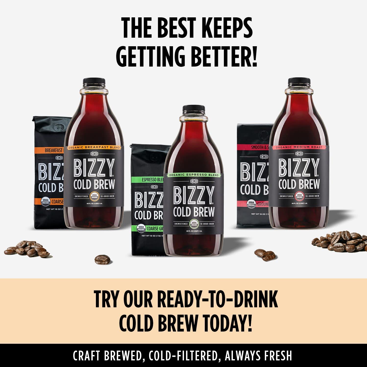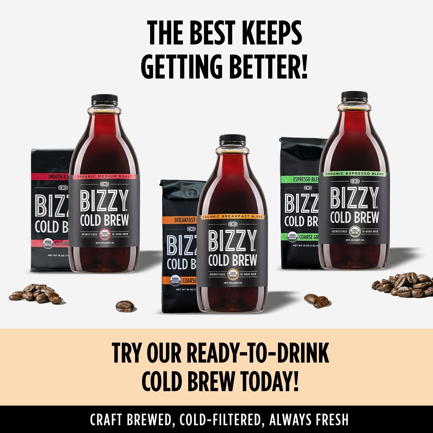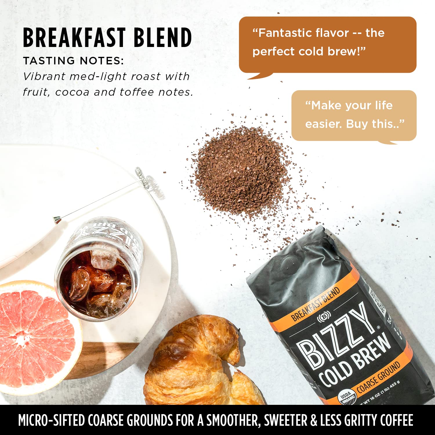 Bizzy Organic Cold Brew Coffee | Breakfast Blend | Coarse Ground Coffee | Micro Sifted | Specialty Grade | 100% Arabica | 1 LB