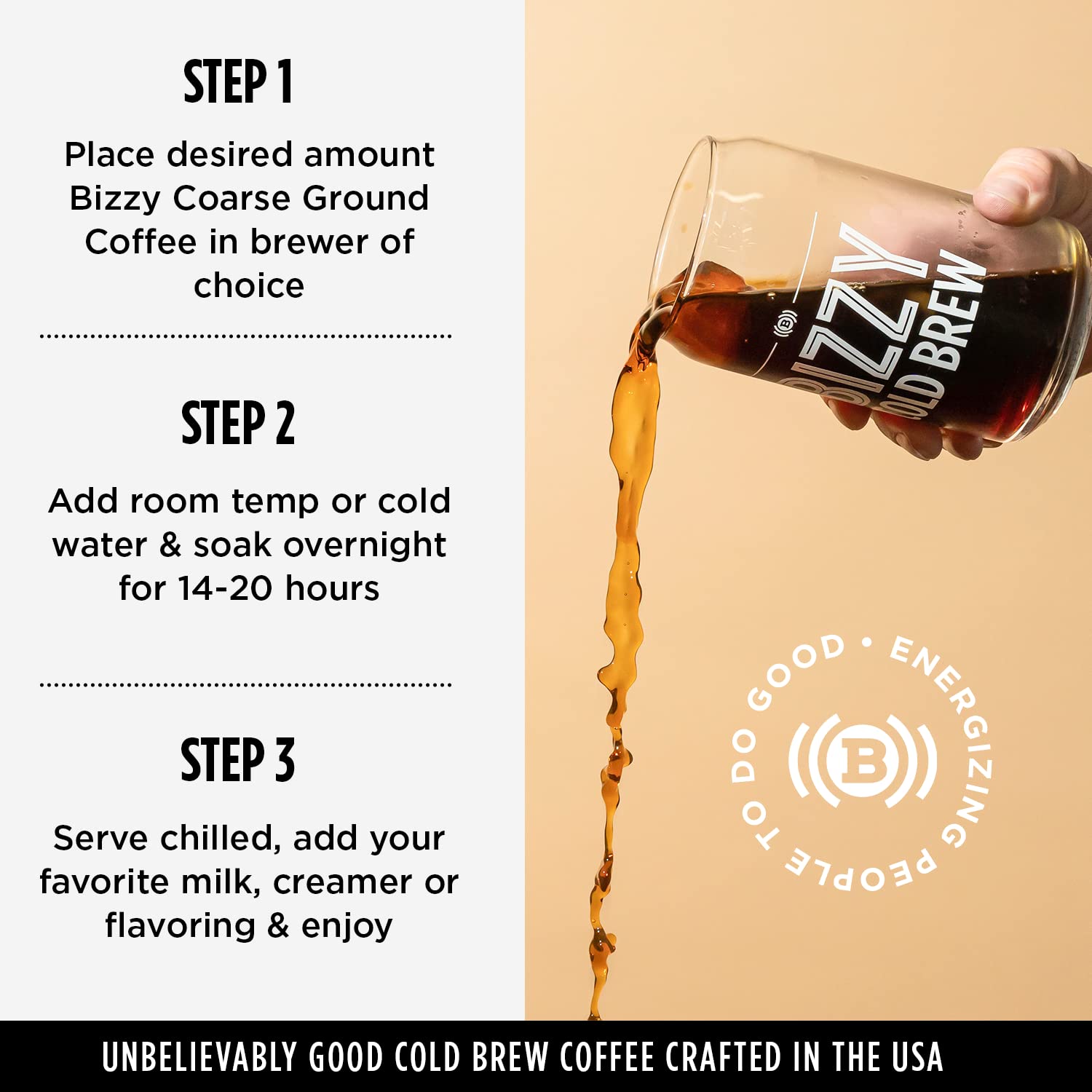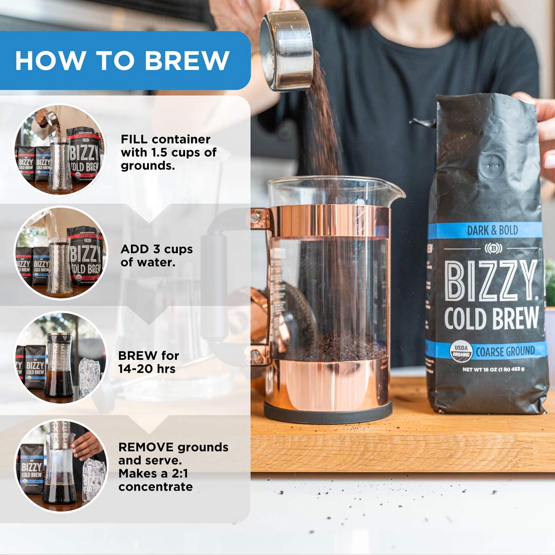 Bizzy Organic Cold Brew Coffee | Dark & Bold Blend | Coarse Ground Coffee | Micro Sifted | Specialty Grade | 100% Arabica | 1 LB