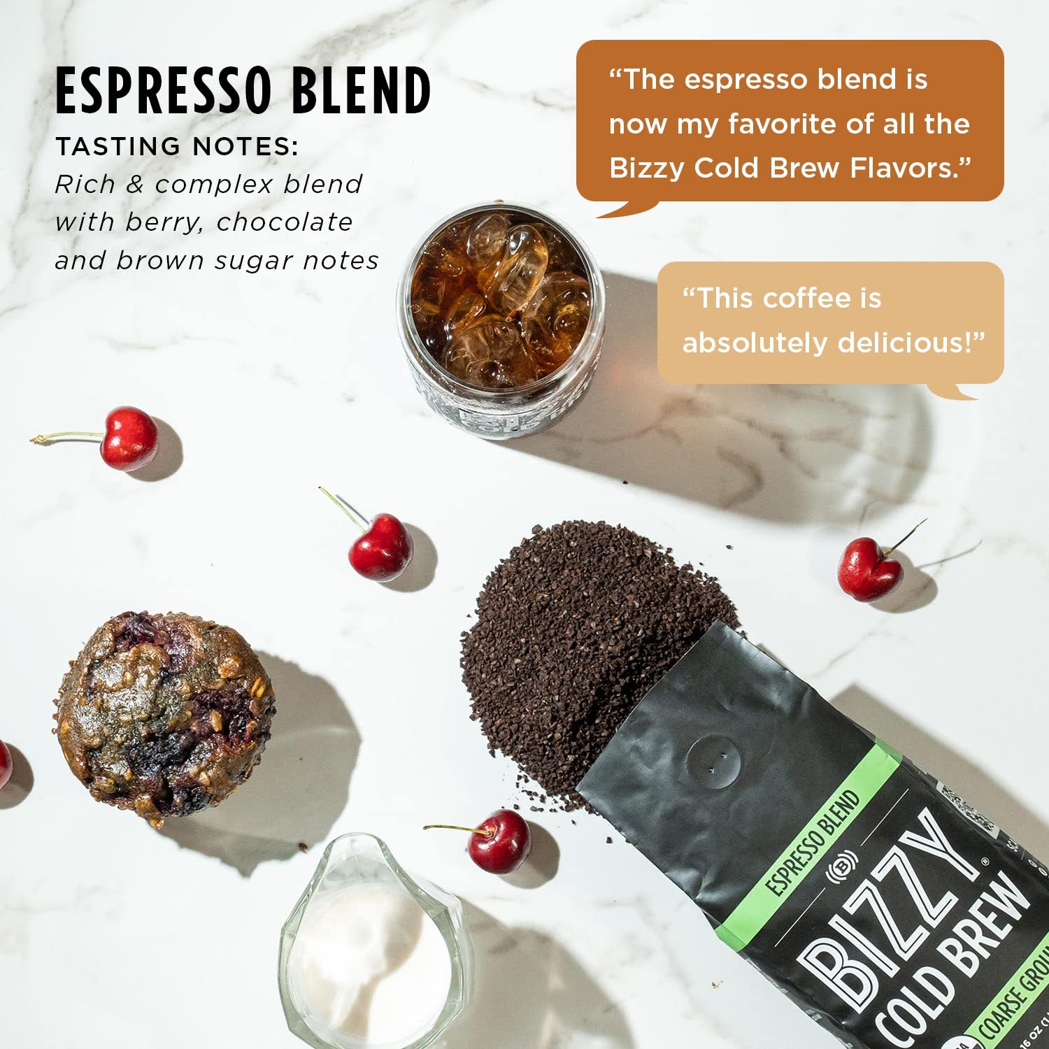 Bizzy Organic Cold Brew Coffee | Espresso Blend | Coarse Ground Coffee | Micro Sifted | Specialty Grade | 100% Arabica | 1 LB