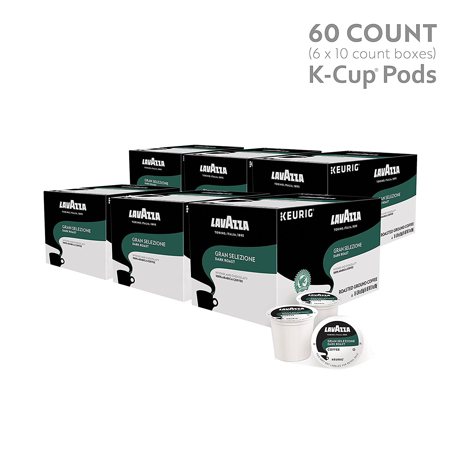 Lavazza Gran Selezione Single-Serve Coffee K-Cups for Keurig Brewer. Dark Roast. Authentic Italian. Value Pack. 100% Arabica. Rainforest Alliance Certified. 10-Count Boxes (Pack of 6)