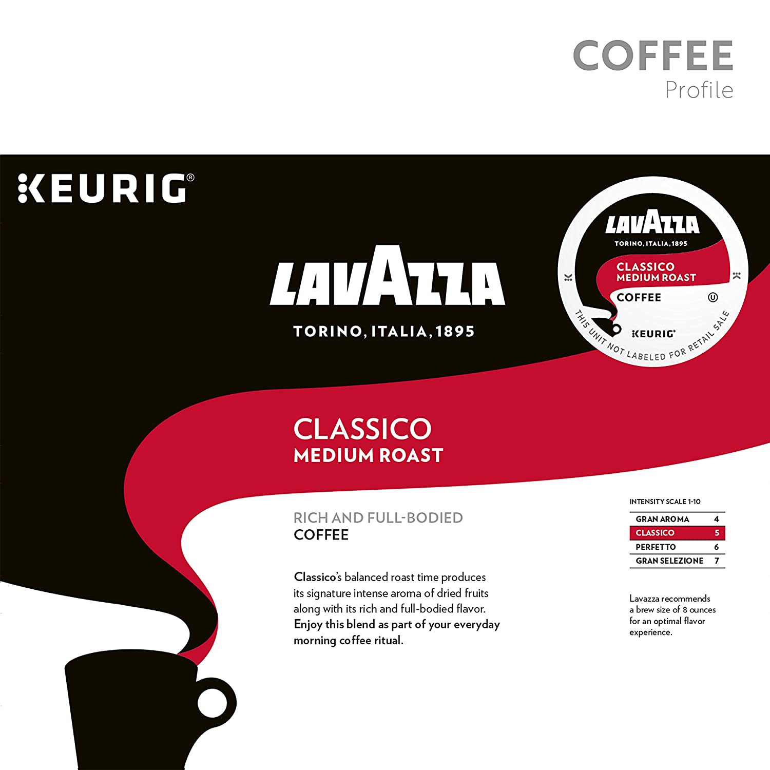 Lavazza Classico Single-Serve Coffee K-Cups for Keurig Brewer. Medium Roast. 10 Count Boxes (Pack of 6) .100% Arabica. Value Pack. Full bodied medium roast with rich flavor and notes of dried fruit