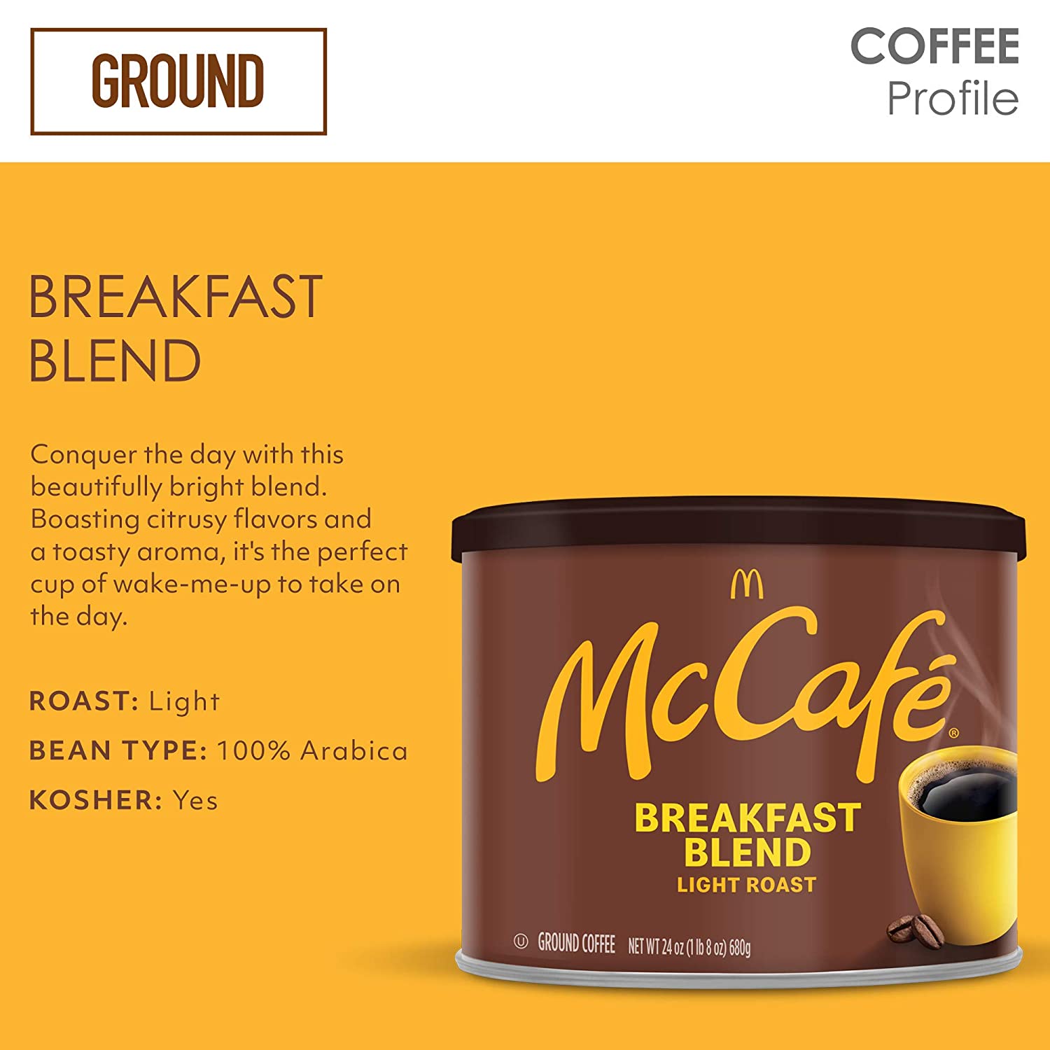 McCafe Breakfast Blend. Light Roast Ground Coffee. 24 oz Canister