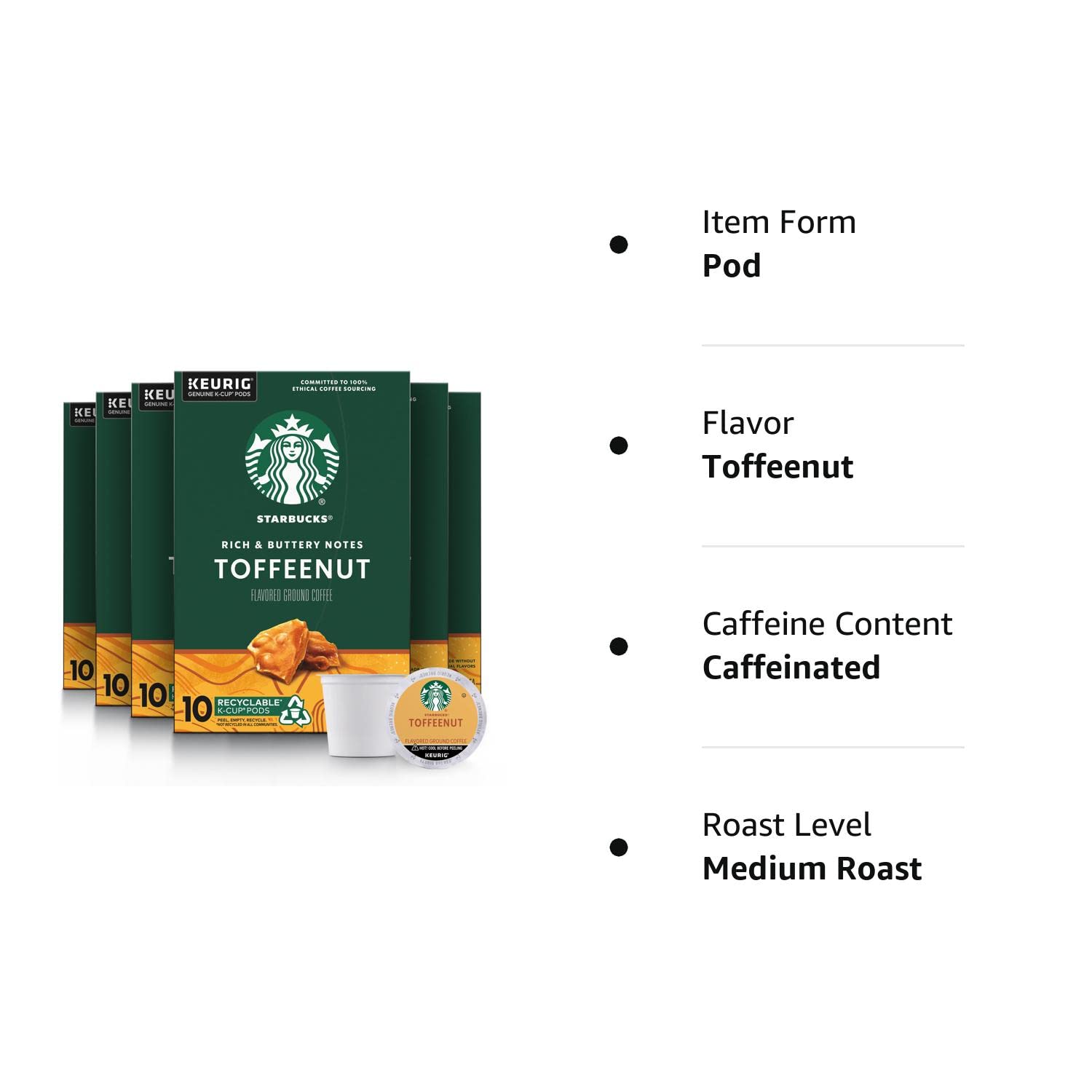 Starbucks Medium Roast K-Cup Coffee Pods. Toffeenut for Keurig Brewers. 10 Count (Pack of 6)
