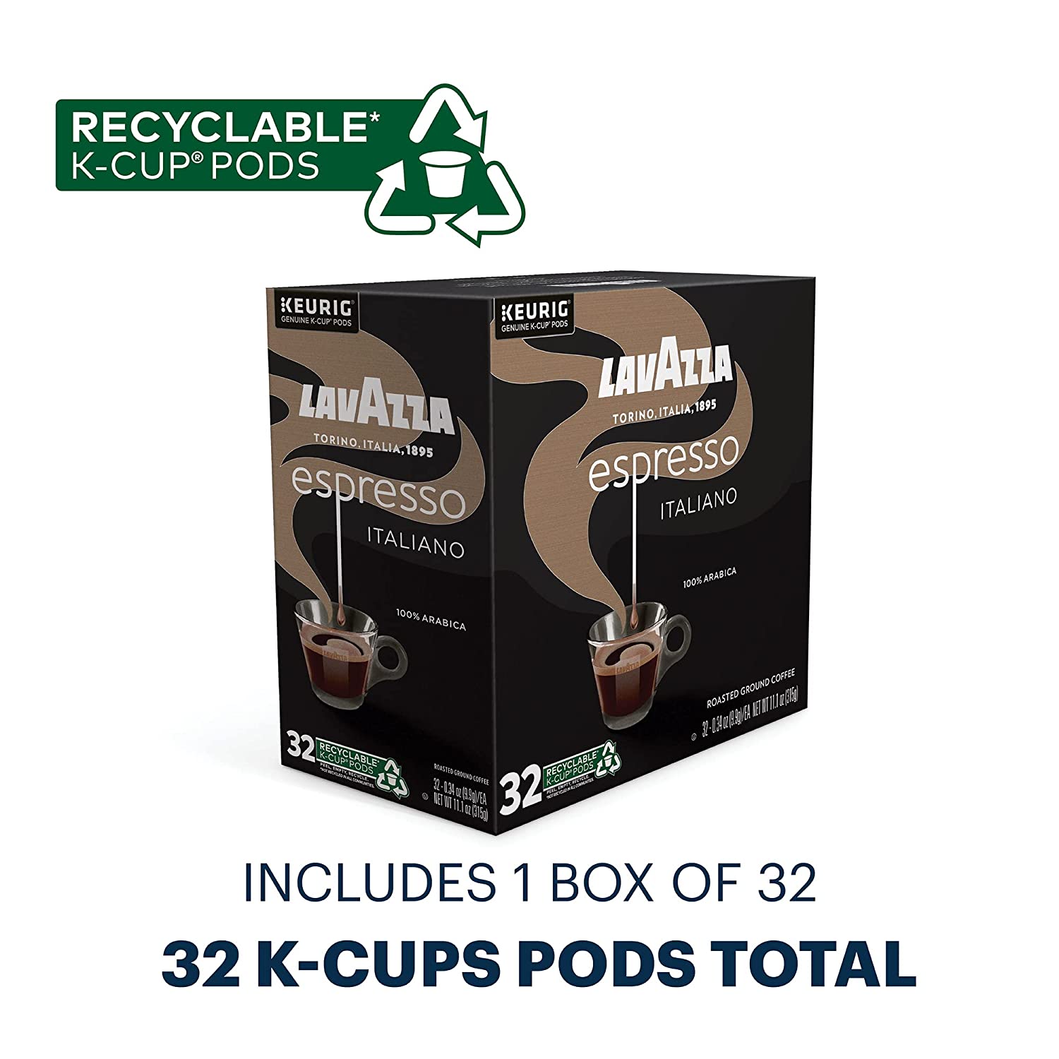 Lavazza Espresso Italiano Single-Serve Coffee K-Cups for Keurig Brewer. Medium Roast. Espresso Italiano .100% Arabica. Value Pack. 32 Count