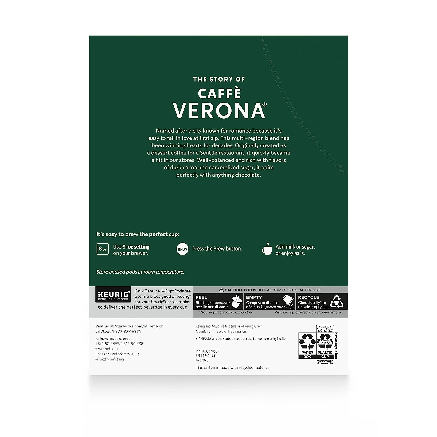 Starbucks K-Cup Coffee Pods. Dark Roast Coffee. Caffè Verona for Keurig Brewers. 100% Arabica. 4 boxes (96 pods total)