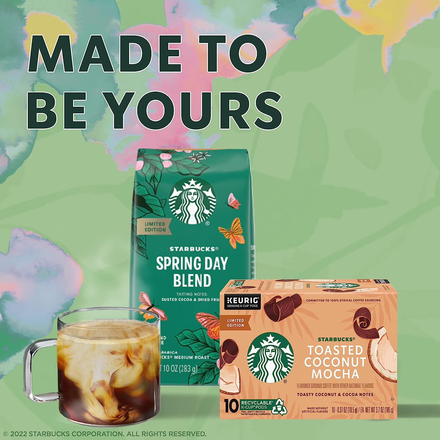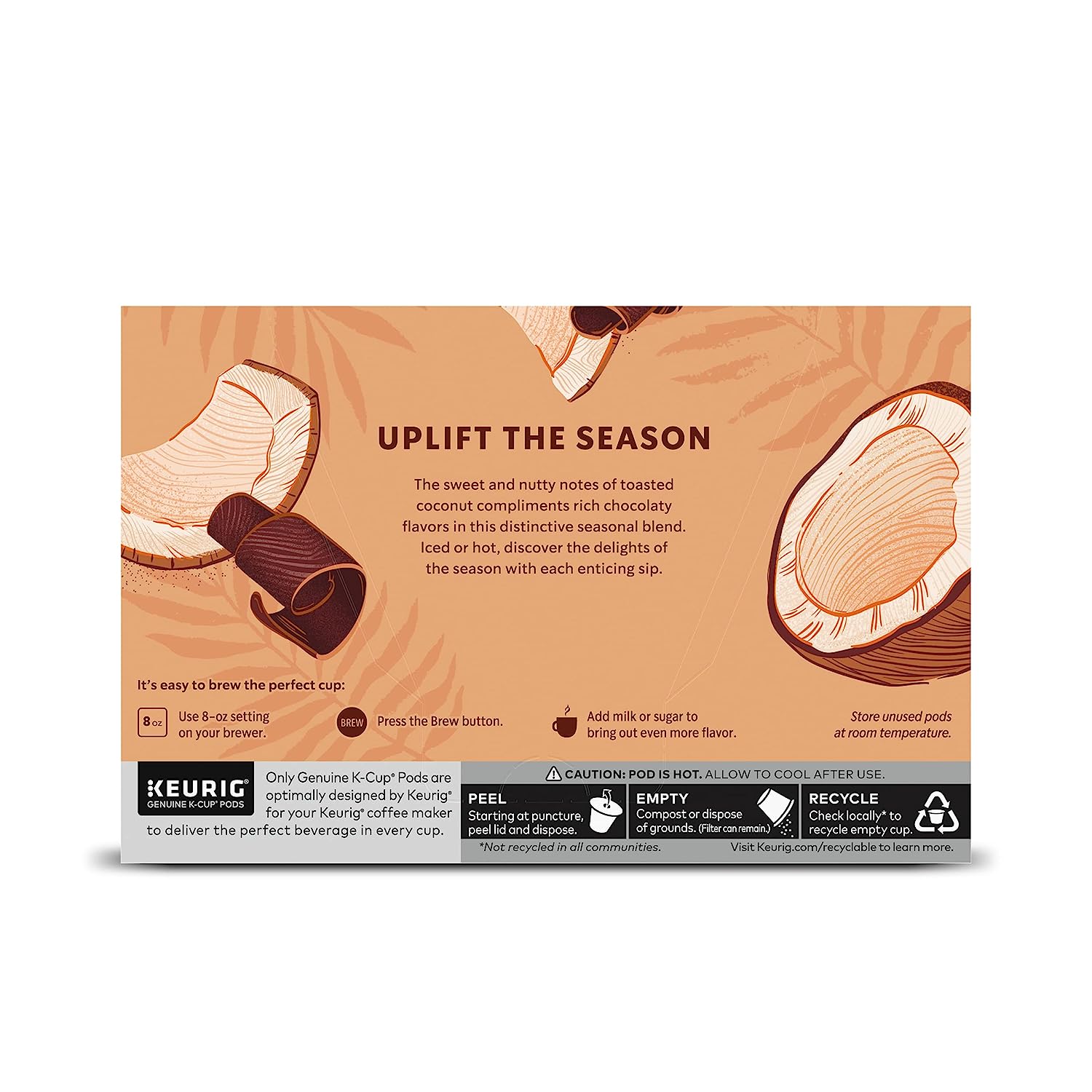 Starbucks K-Cup Coffee Pods. Toasted Coconut Mocha Flavored Coffee. 100% Arabica. Naturally Flavored. Limited Edition. 6 boxes (60 pods total)