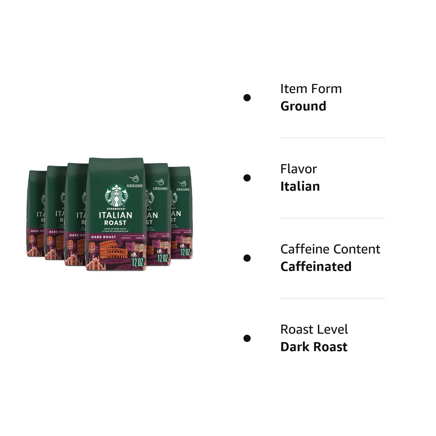 Starbucks Dark Roast Ground Coffee. Italian Roast. 100% Arabica. 6 bags (12 oz.)