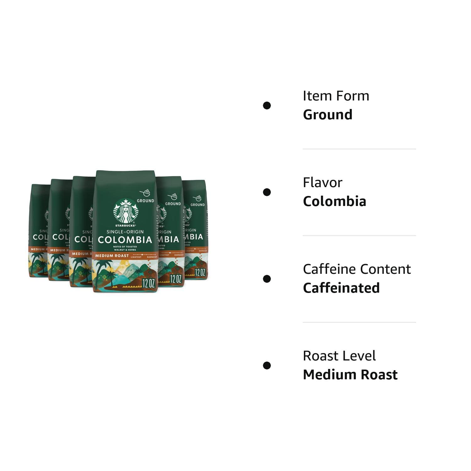 Starbucks Ground Coffee. Medium Roast Coffee. Colombia 100% Arabica 6 bags (12 oz each)