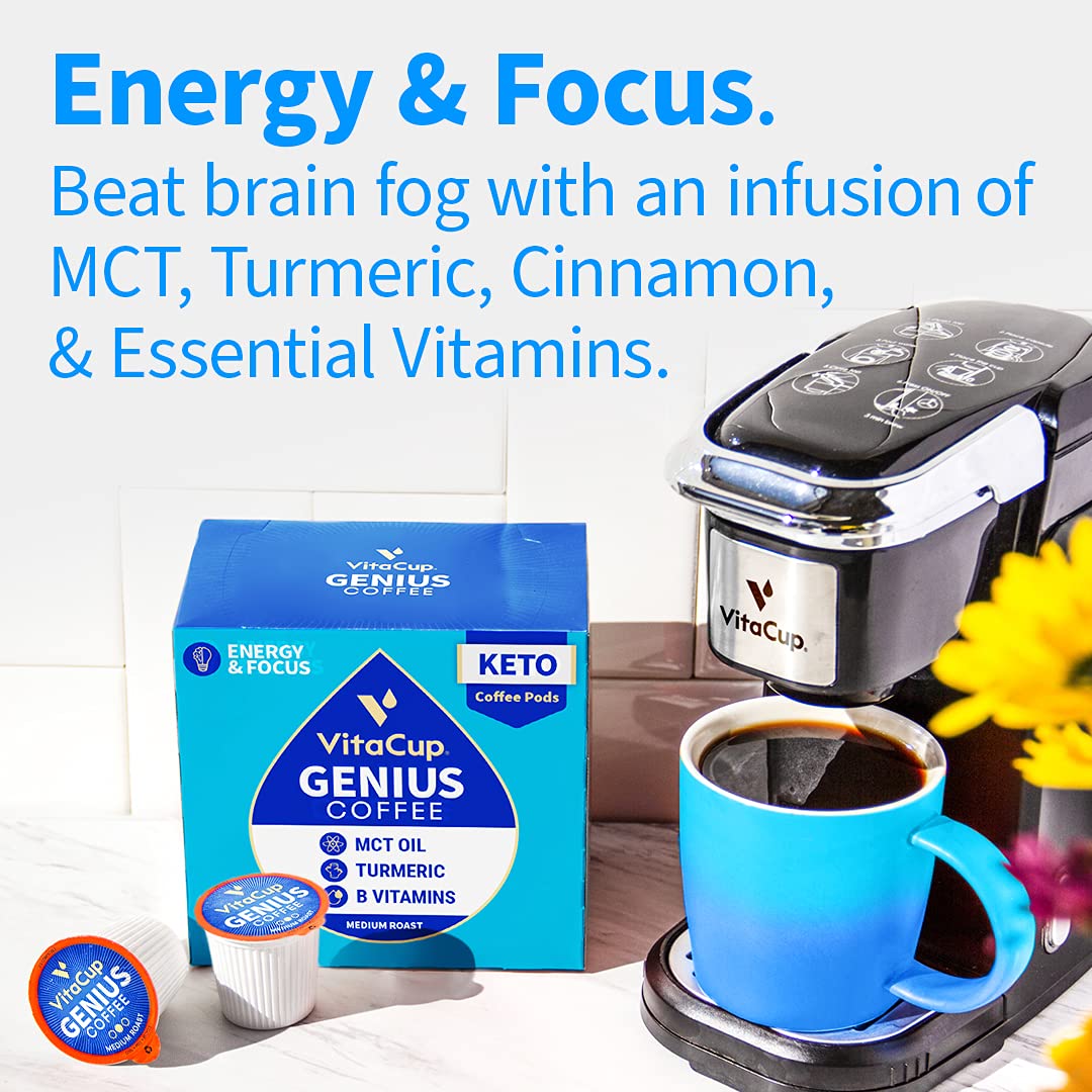 VitaCup Genius Keto Coffee Pods. Increases Energy & Focus Infused. 16 Ct