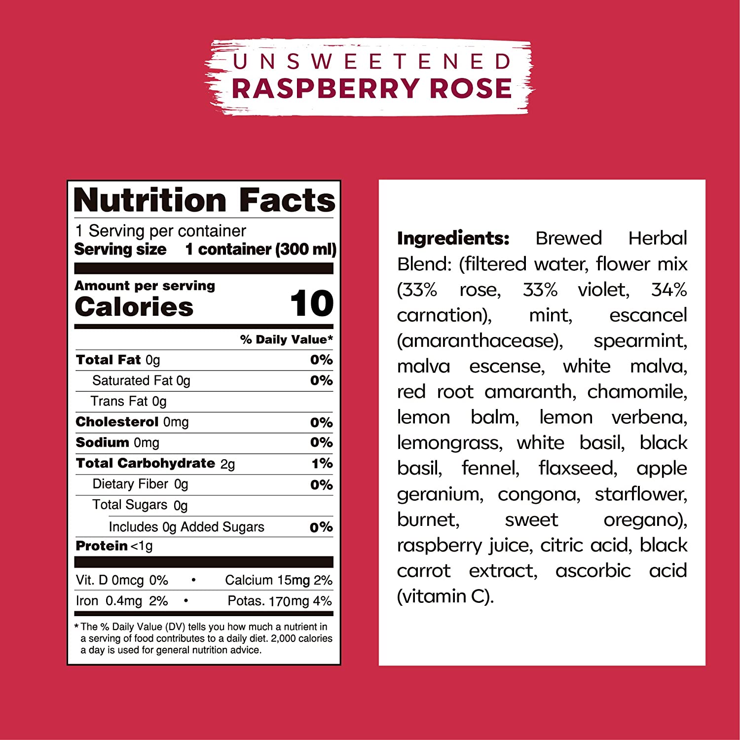 Waku. Unsweetened Raspberry Rose. Herbal Iced Tea. 12 Pack. 10 oz Bottles