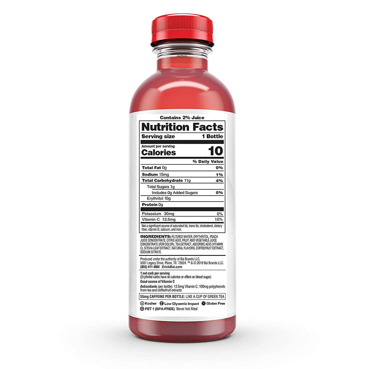 Bai. Panama Peach. Antioxidant Infused. 18 Ounce Bottles. 12 Pack