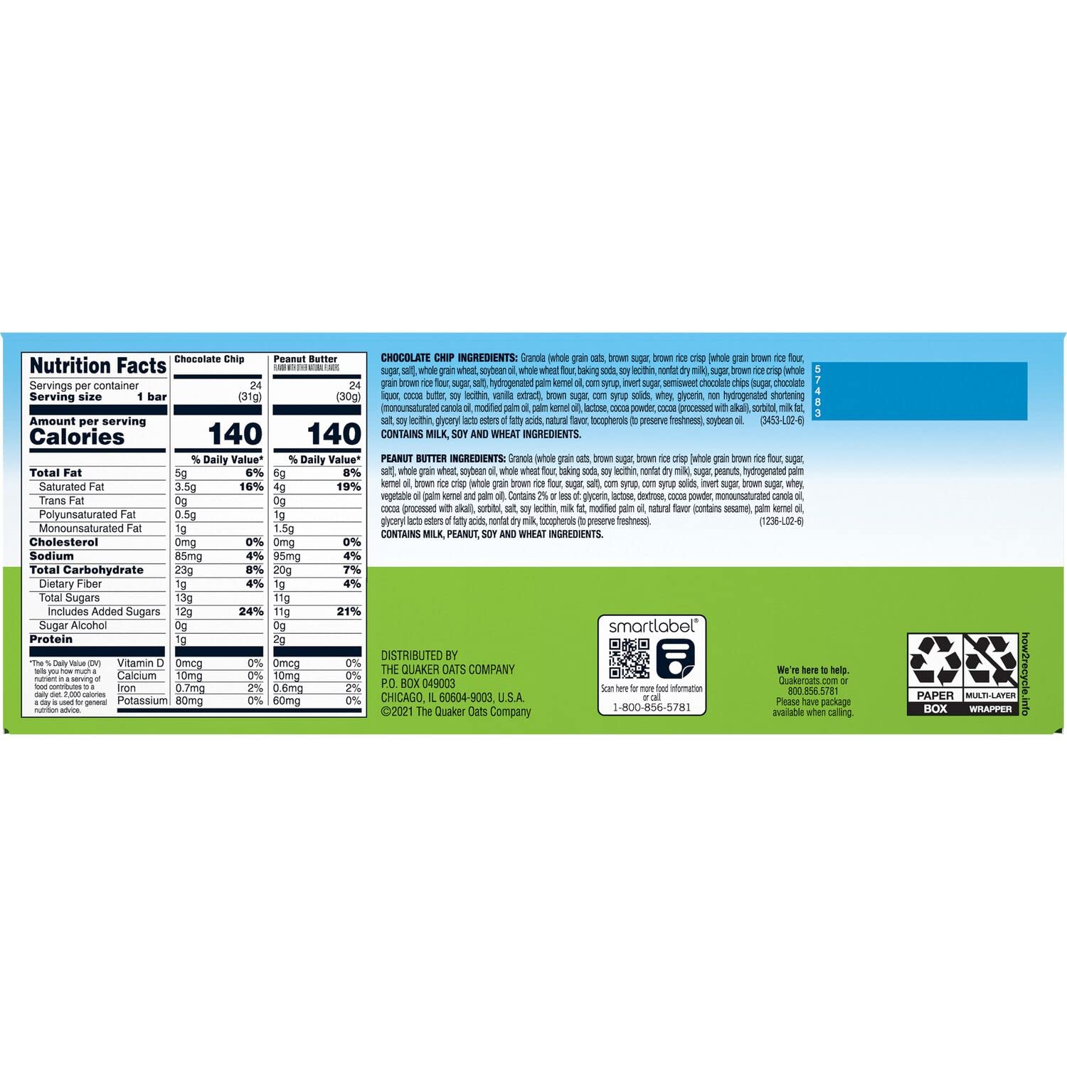 Quaker Chewy Granola Bars. Chewy & Dipps Variety Pack. (58 Bars)