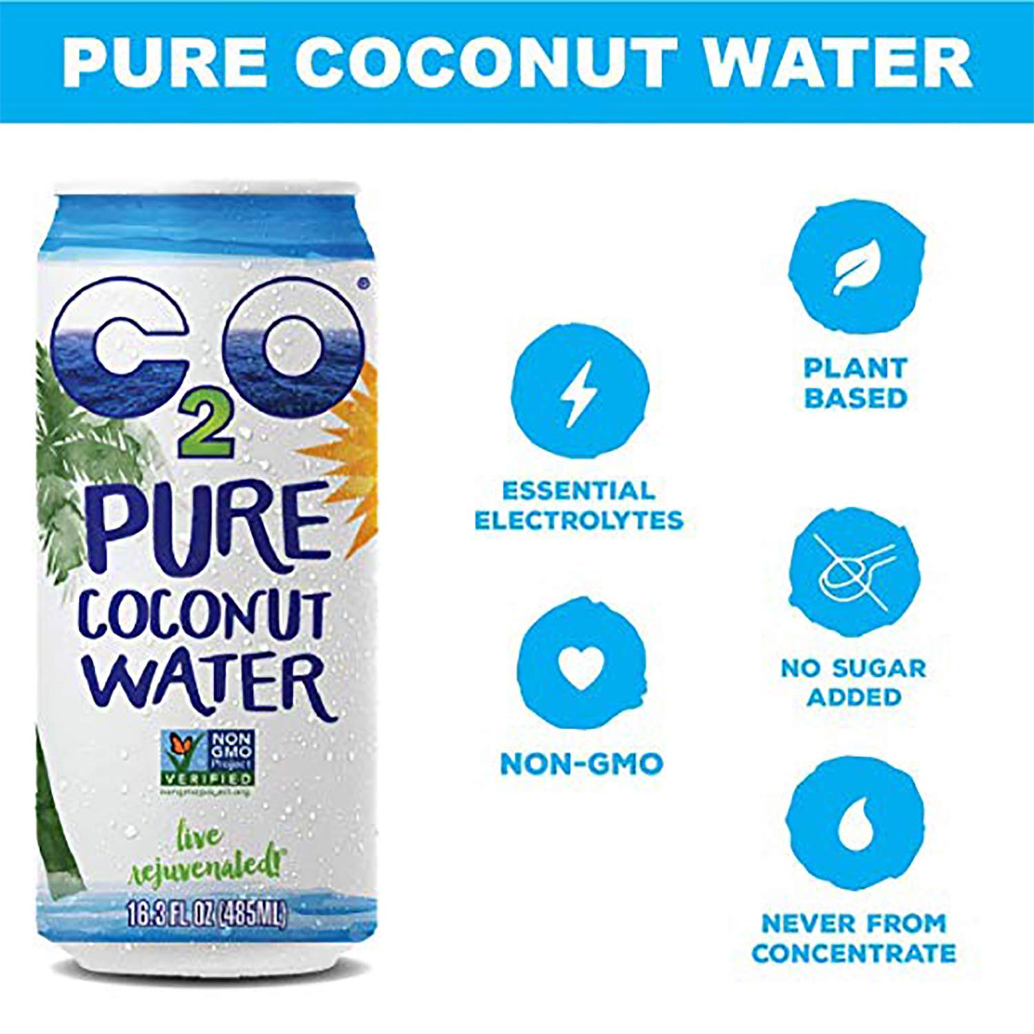 C2O Pure Coconut Water - Plant Based. Non-GMO. No Added Sugar. Essential Electrolytes - 16.3 FL OZ (Pack of 8)