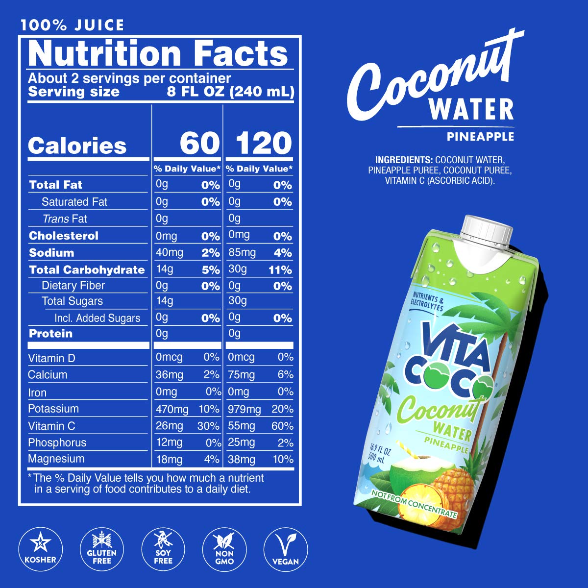Vita Coco Coconut Water Naturally Hydrating Electrolyte Drink 16.9 Fl Oz (Pack of 12). 202.8 Fl Oz