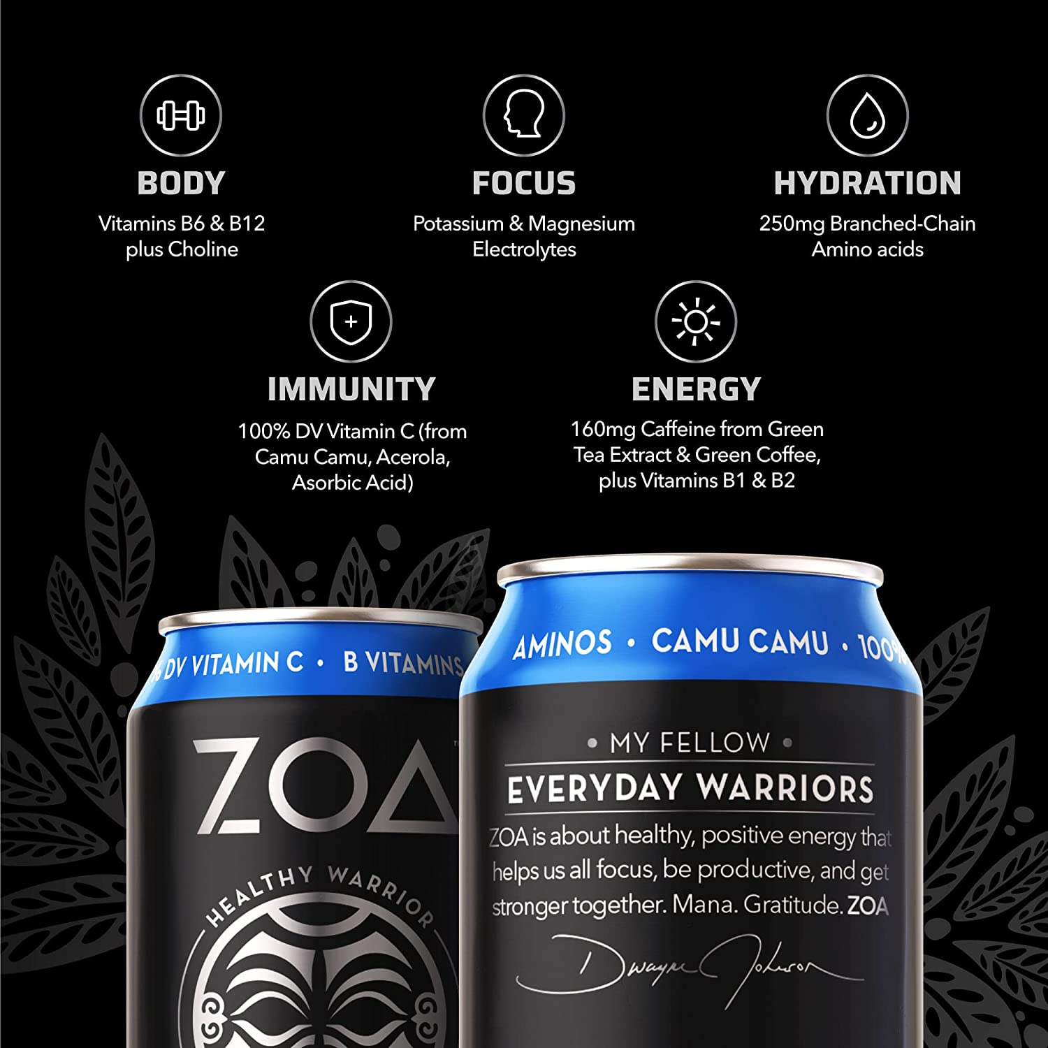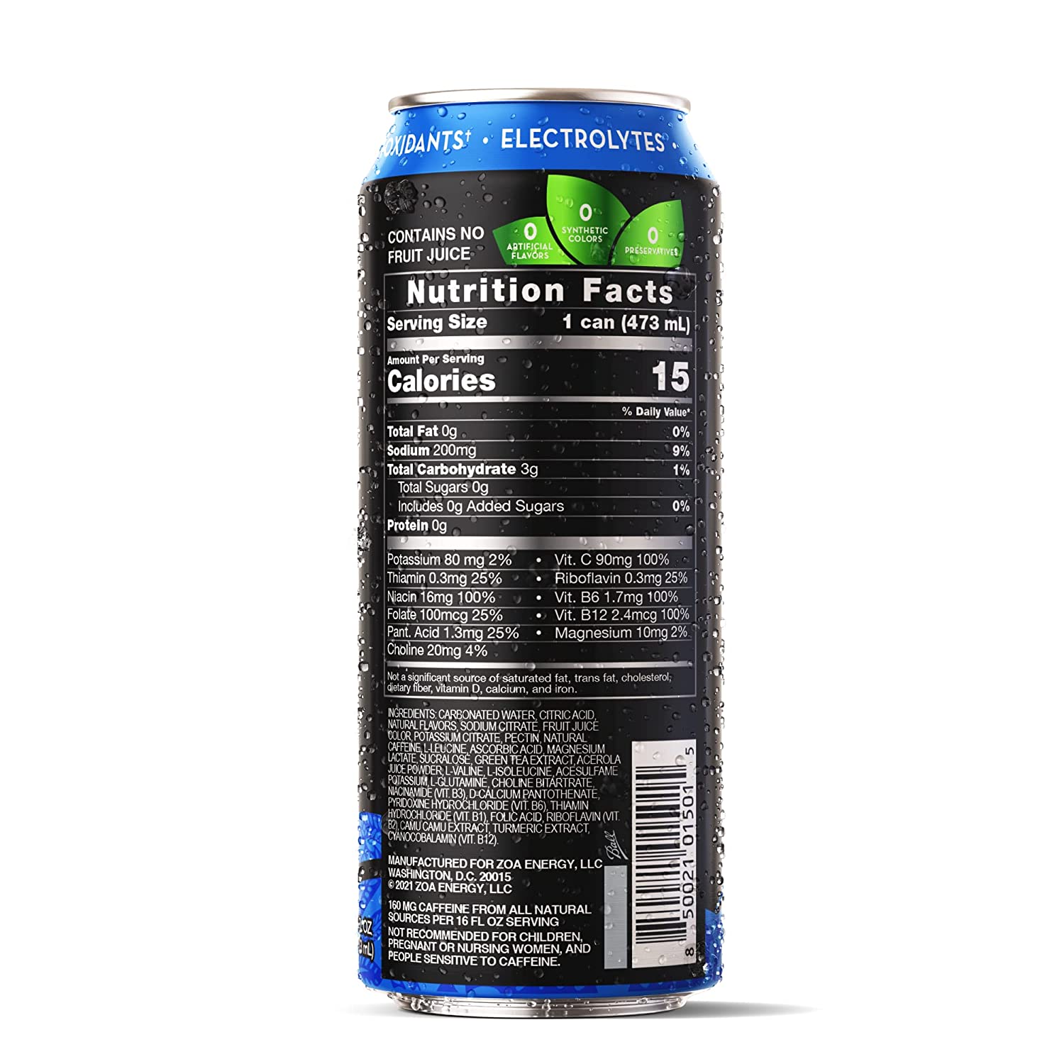ZOA Zero Sugar Healthy. Positive Energy Drink. Original. 16 oz. (12 Pack)