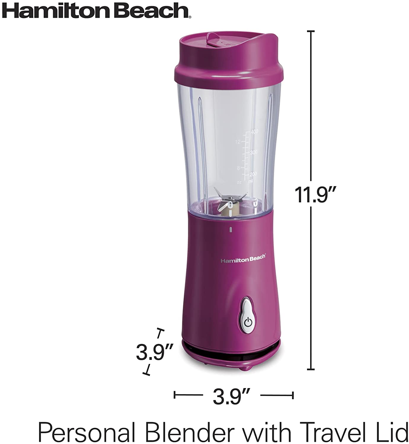 Hamilton Beach Personal Smoothie Blender With 14 Oz Travel Cup And Lid. Blue 51132