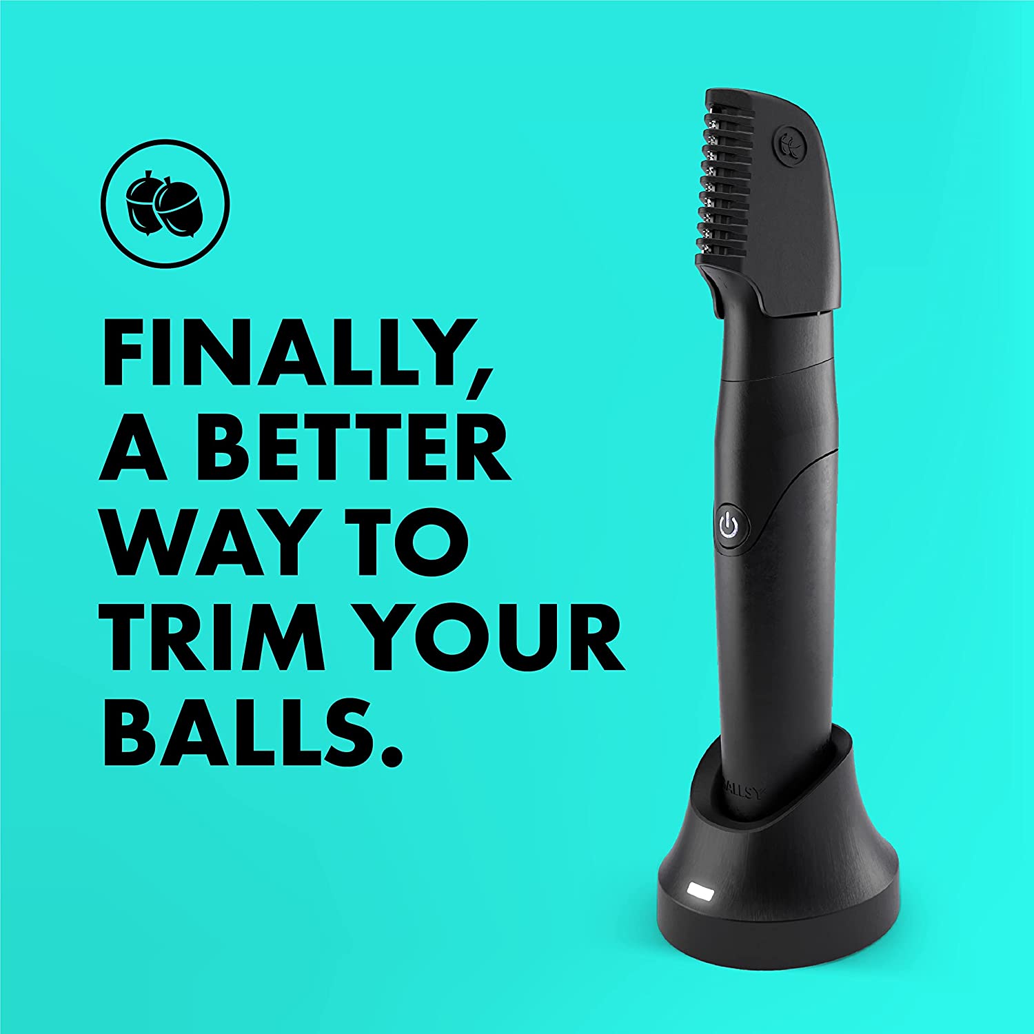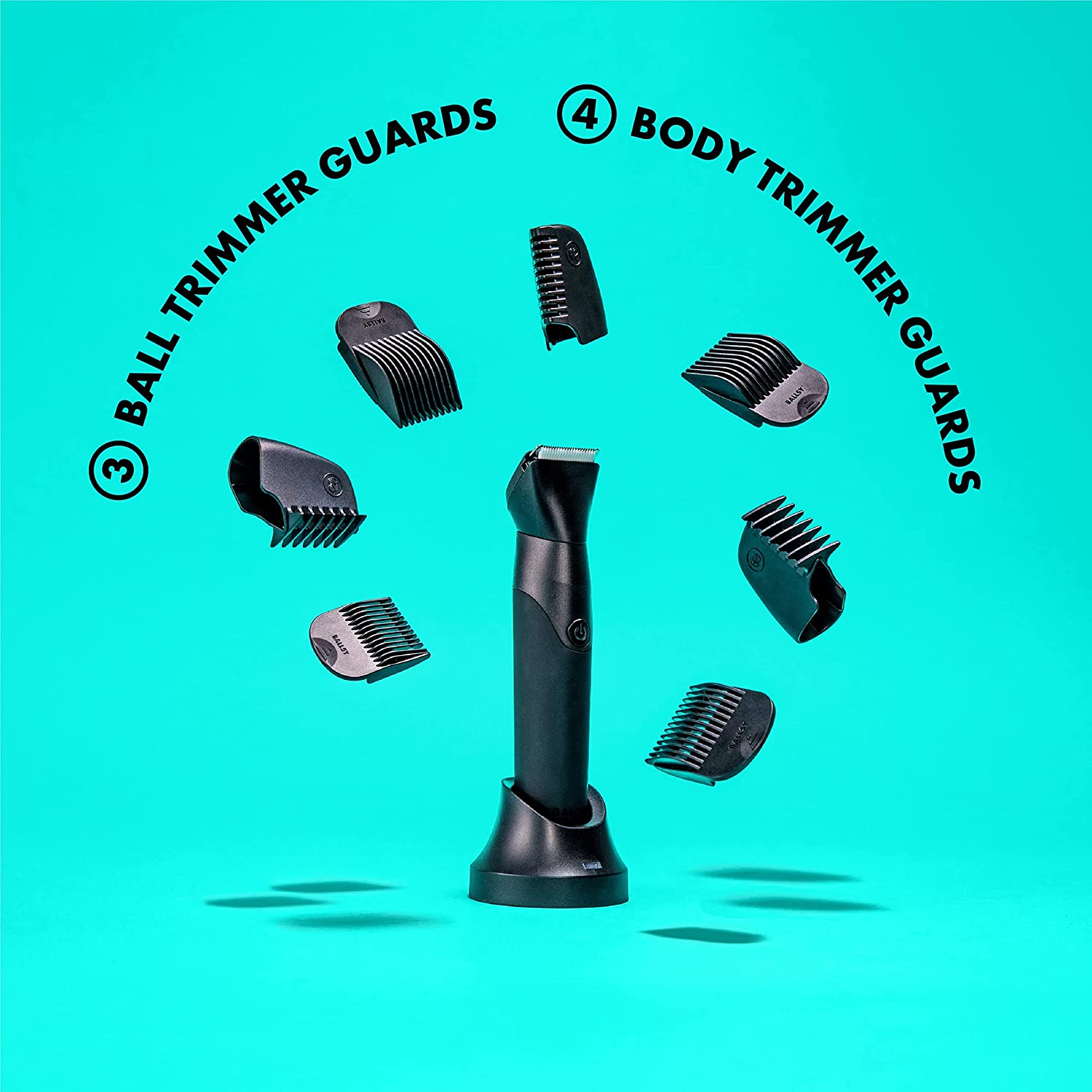 Ballsy B2 Groin & Body Trimmer for Men. Includes 2 Quick Change Heads. Waterproof. Cordless Charging Base for The Ultimate Close Shave