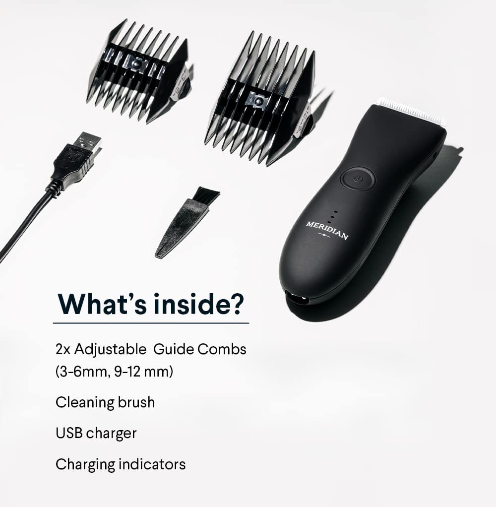 Meridian - The Trimmer - Electric Body & Pubic Hair Trimmer - Waterproof and Cordless for Wet/Dry Use - Painlessly Remove Hair to Feel Fresh Down There - for Men & Women - 90 Min Battery Life - Onyx