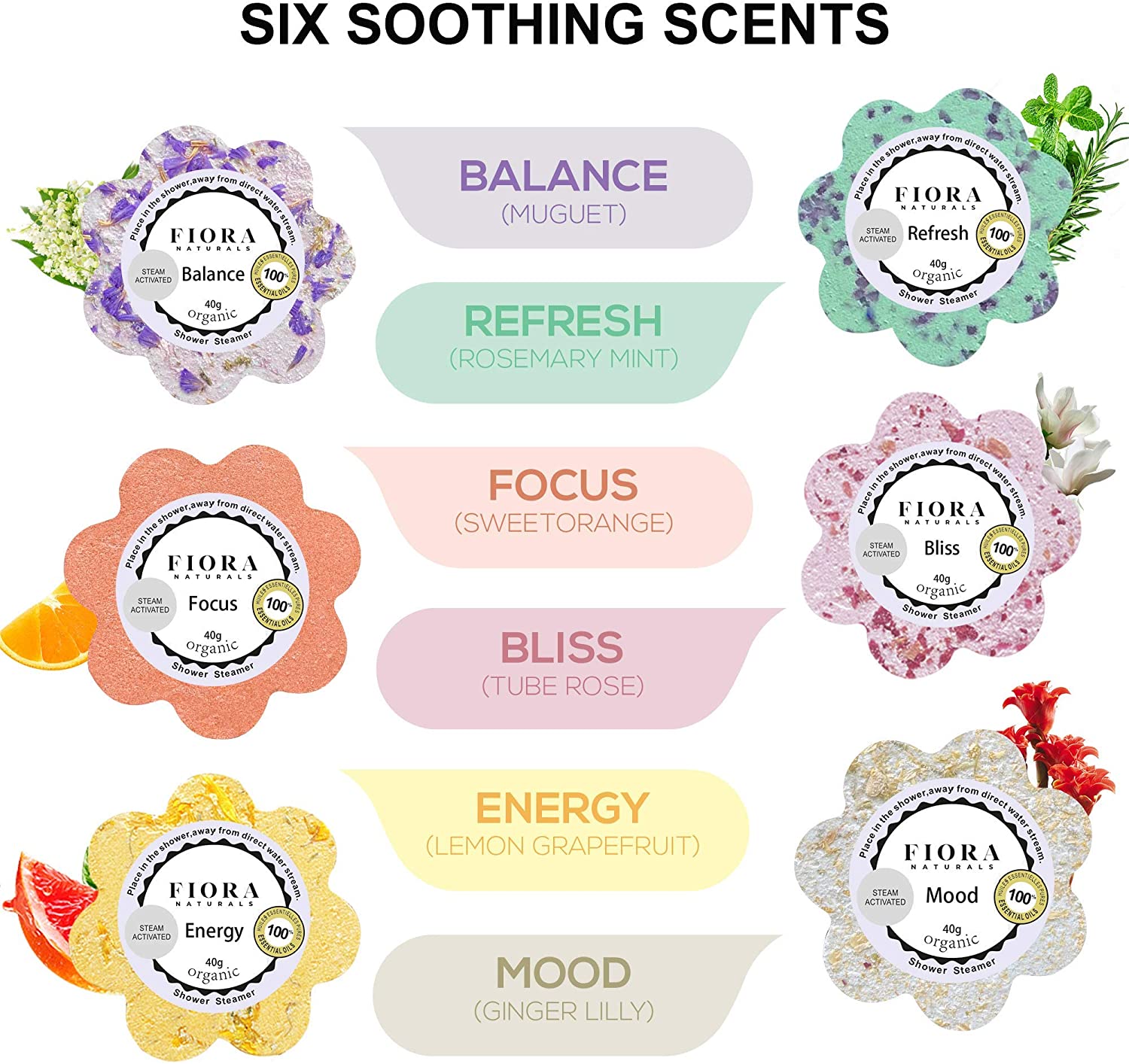 Cleverfy Aromatherapy Shower Steamers. Set of 6 Shower Bombs with Essential Oil