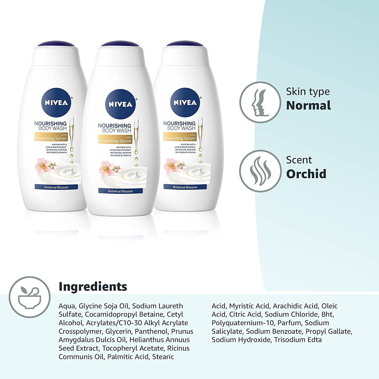 NIVEA Nourishing Botanical Blossom Body Wash. Pack of 3. 20 Fl Oz Bottles