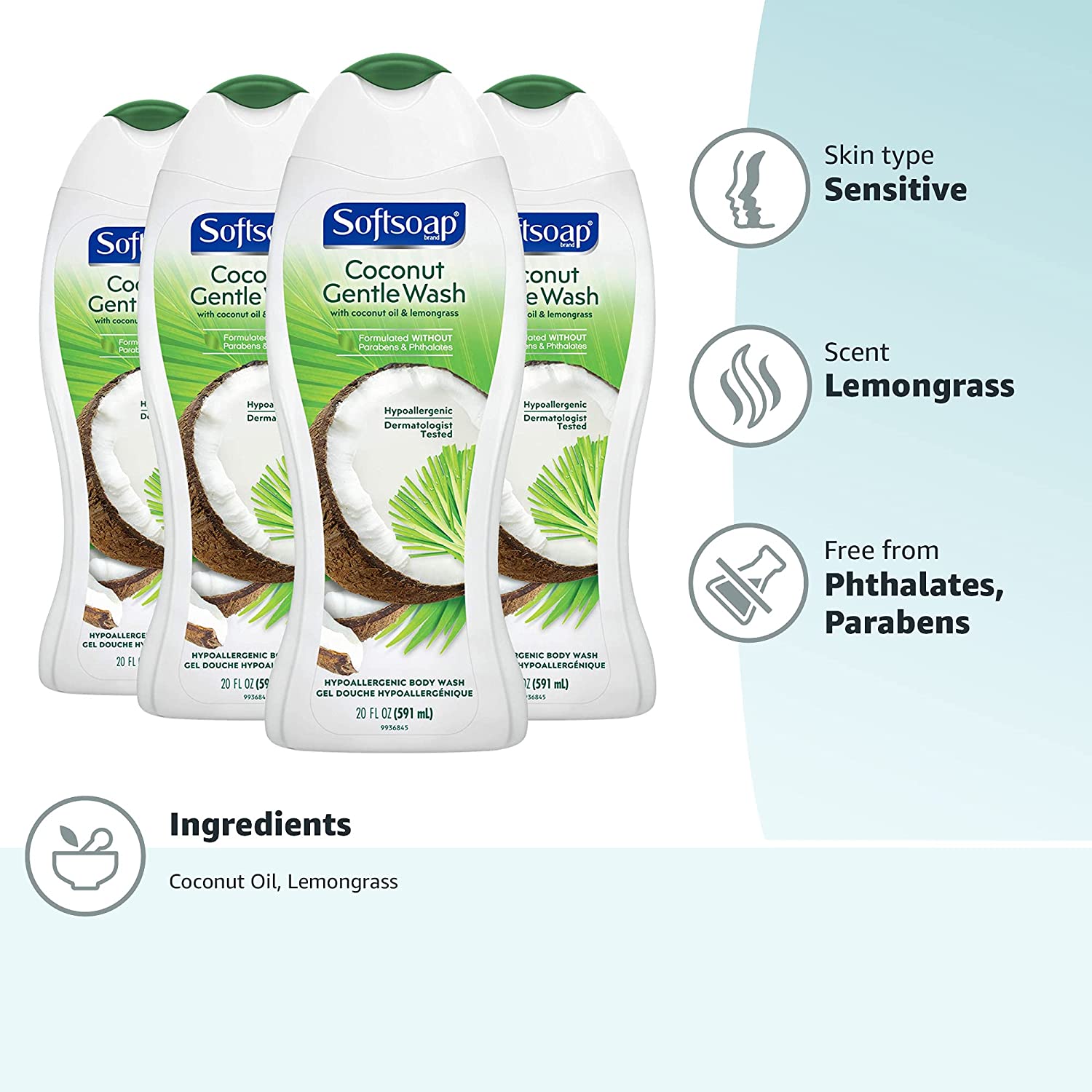 Softsoap Gentle Wash Hypoallergenic Body Wash for Women. Coconut Oil Lemongrass