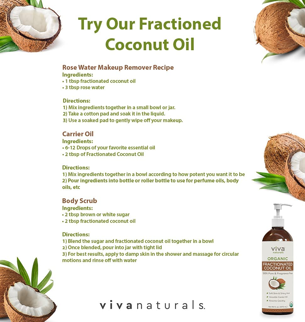 Viva Naturals Organic Fractionated Coconut Oil for Hair. Carrier Oil - 16 fl oz