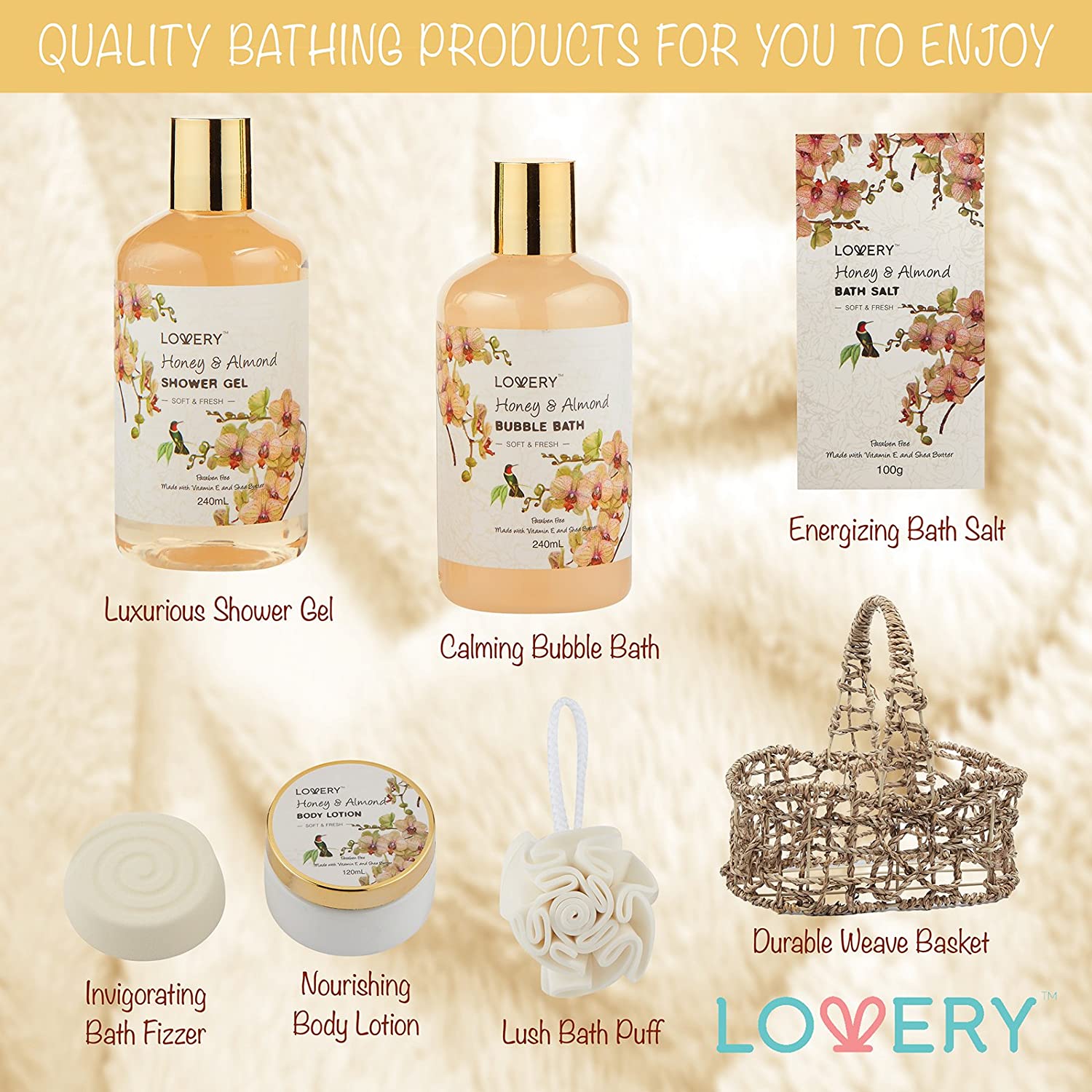 Home Spa Gift Basket - Honey & Almond Scent Luxury Bath Body Set