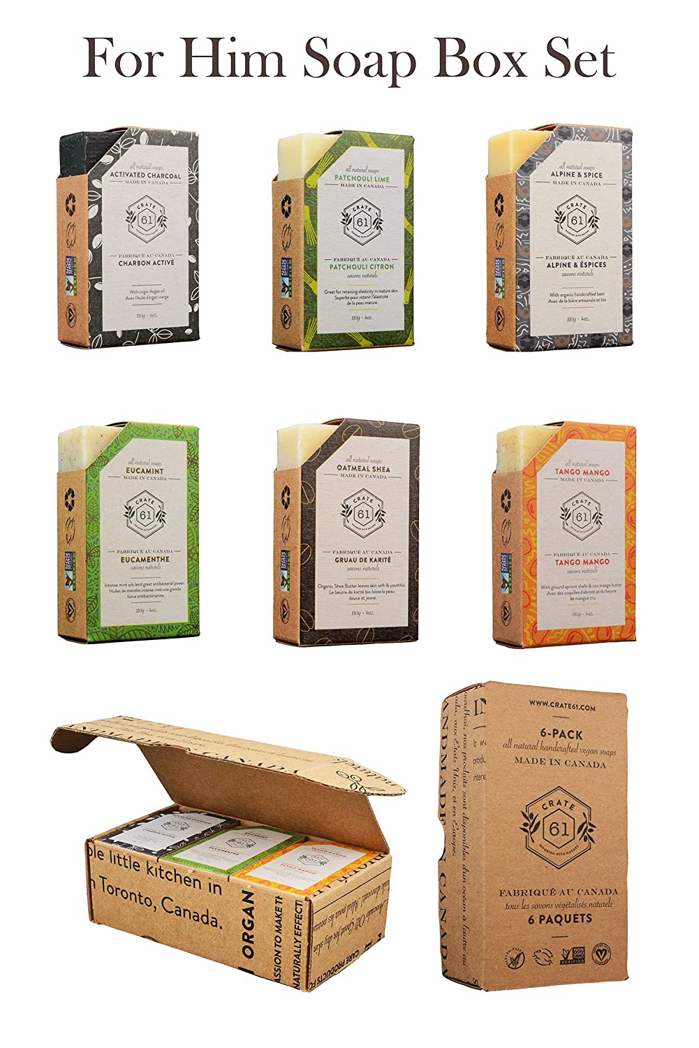 Crate 61 “For Him” Soap 6-Pack Box Set. 100% Vegan Cold Process Bar Soap