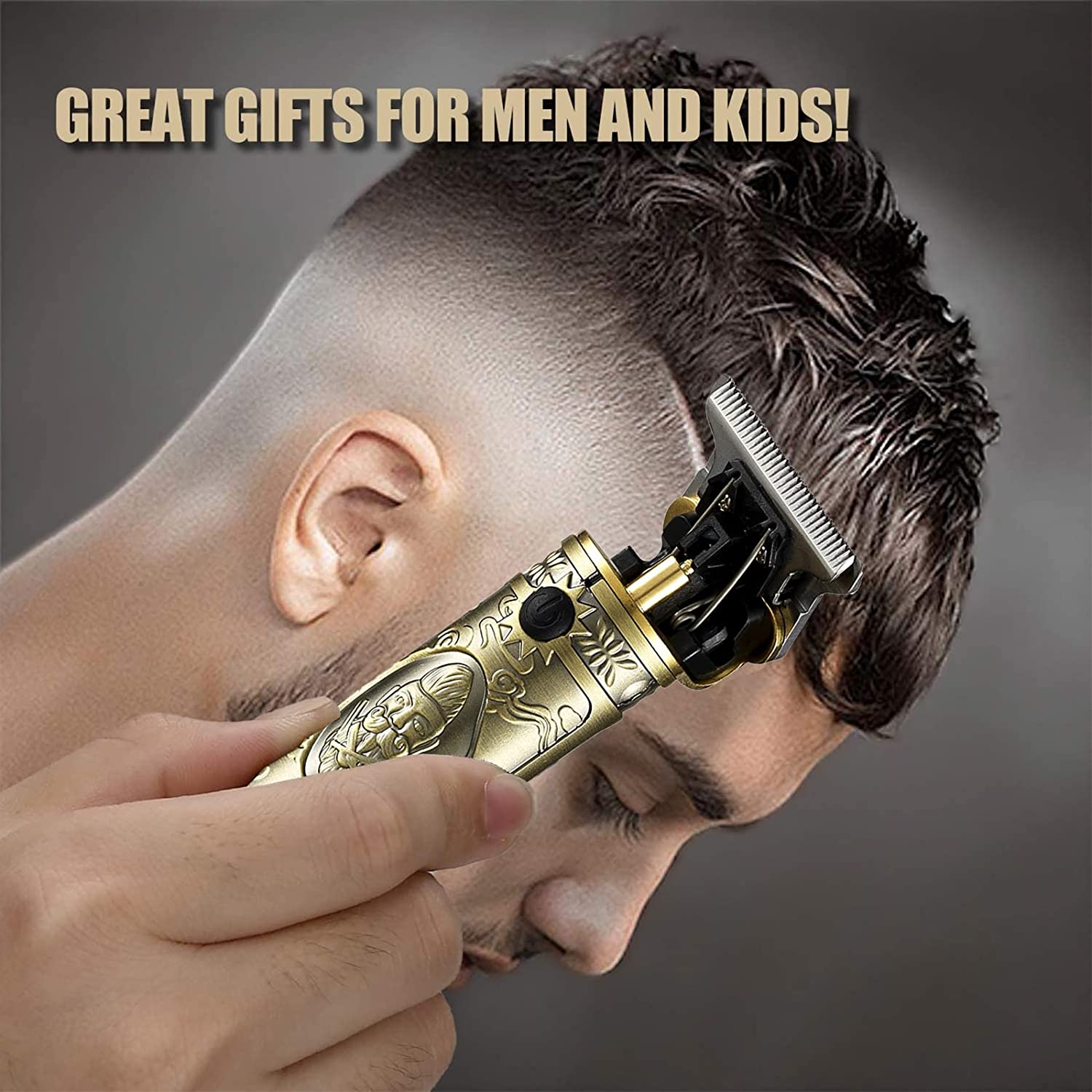 AMULISS Professional Mens Hair Clippers Zero Gapped Cordless Hair Trimmer Professional Haircut & Grooming Kit - Golden