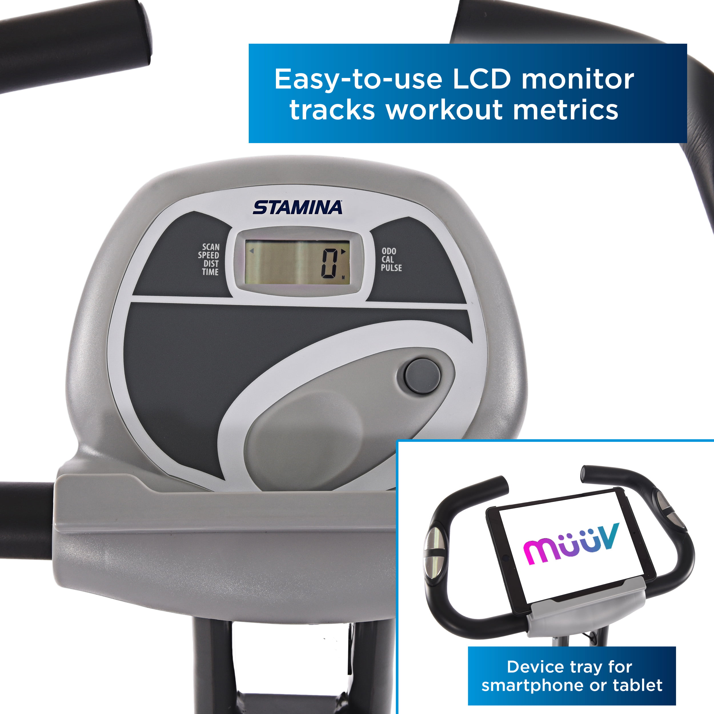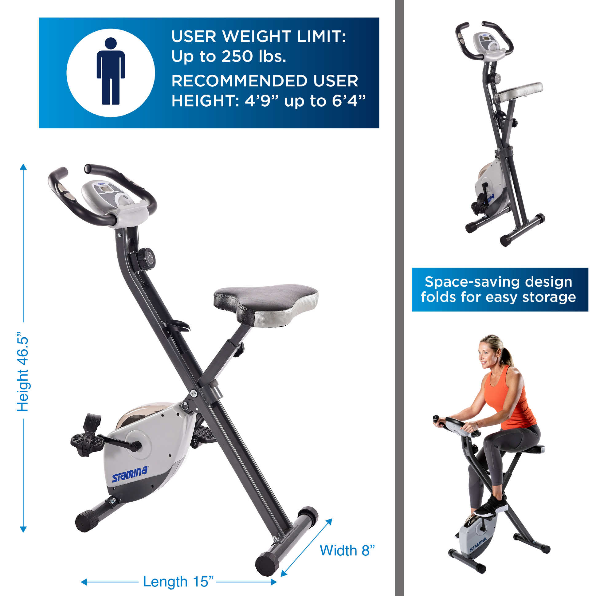Stamina Cardio Exercise Bike with Heart Rate Sensors and Extra Wide Padded Seat. Folding Design for Storage - Exercise Bike
