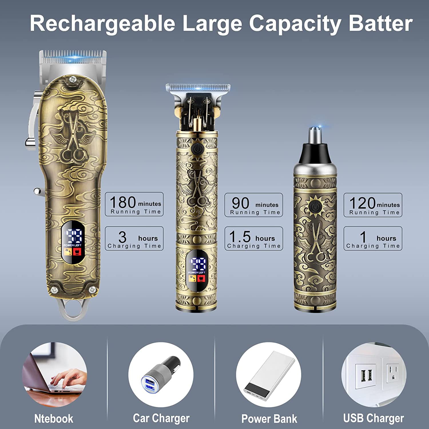 Hairspower Professional Cordless Hair Clippers for Men - T-Blade Trimmer and Nose Hair Trimmer Set