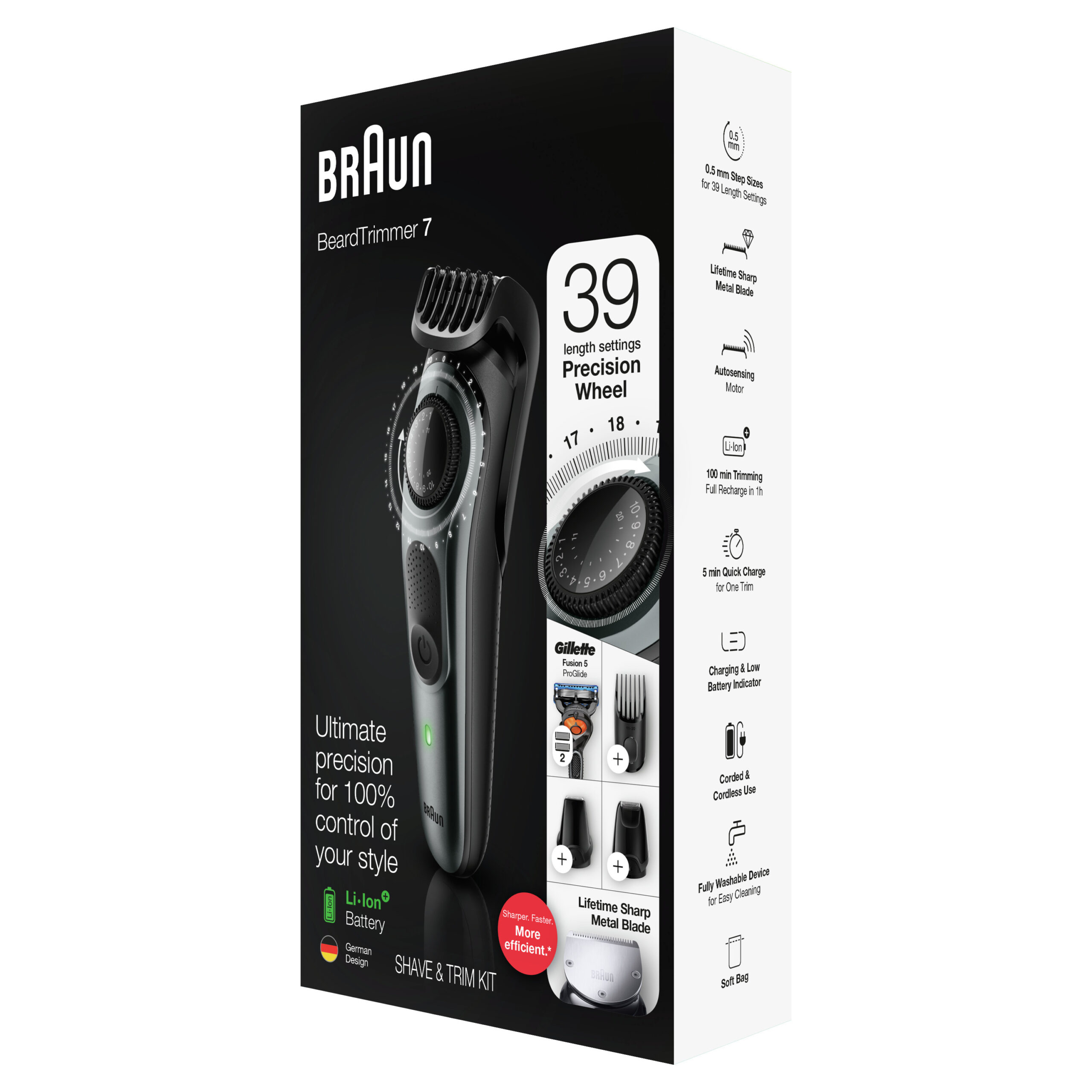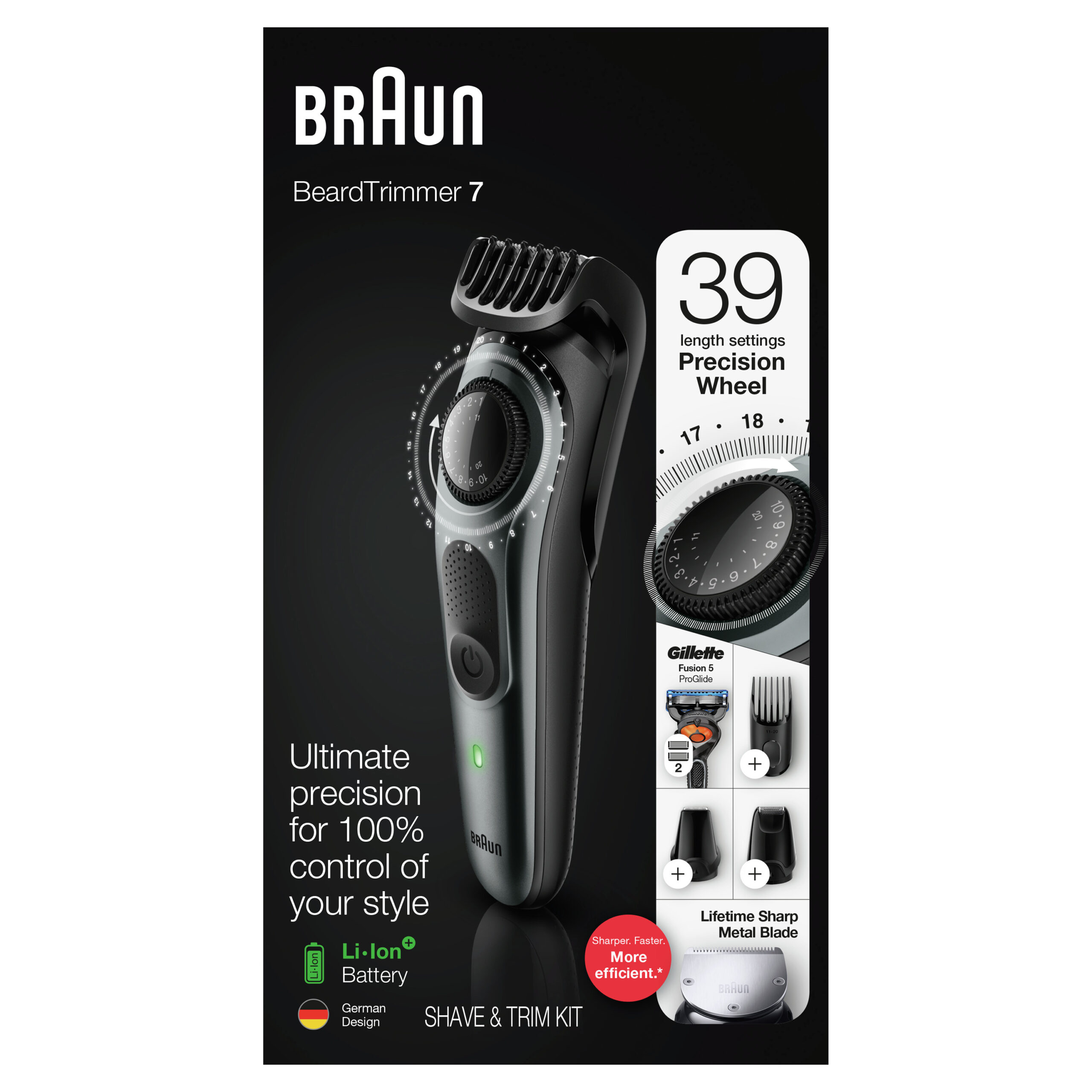 Braun Beard Trimmer BT7220. Hair Clipper for Men. 39 Length Settings. Black/Grey Metal